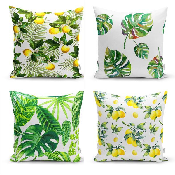 Realhomes Limon ve Tropikal Yaprak Kombinli 4’lü Yastık Kırlent Kılıfı