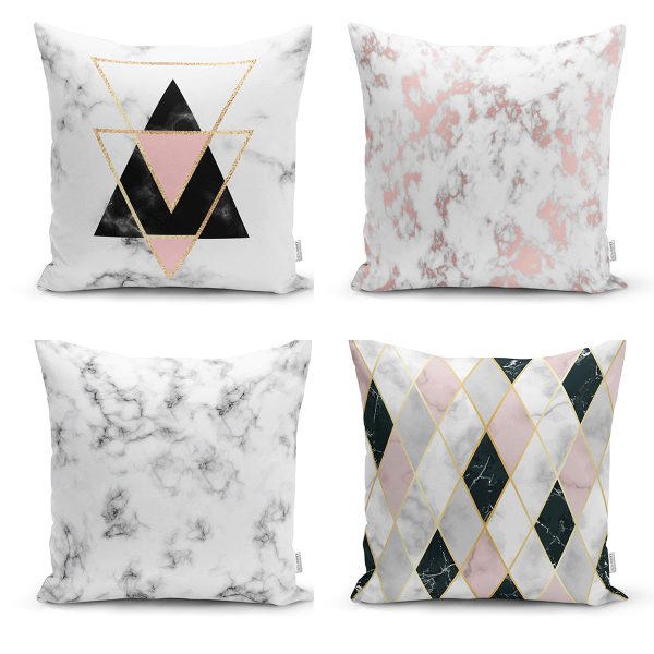4’lü Renkli Zemin Üzerinde Gold Detaylı Mermer Desenli Modern Yastık Kırlent Kılıf Seti