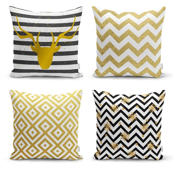 Realhomes Altın Varaklı Geometrik Desenli Dekoratif Modern 4’lü Yastık Kırlent Kılıfı