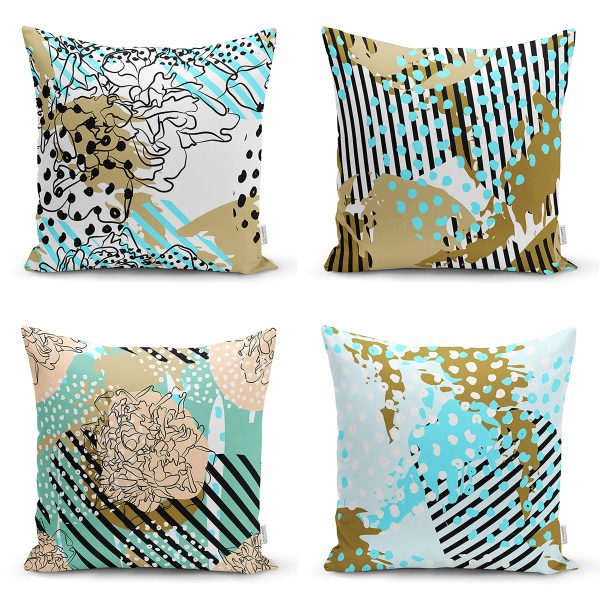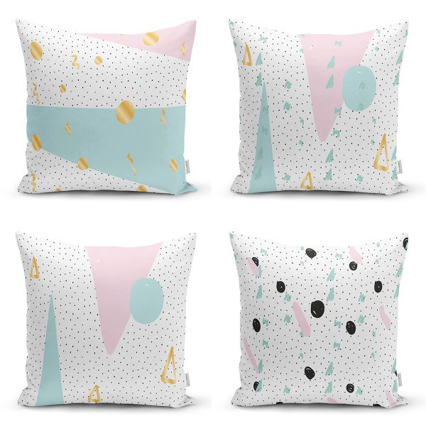 4’lü Renkli Zemin Üzerinde Gold Detaylı Geometrik Desenli Modern Yastık Kırlent Kılıf Seti
