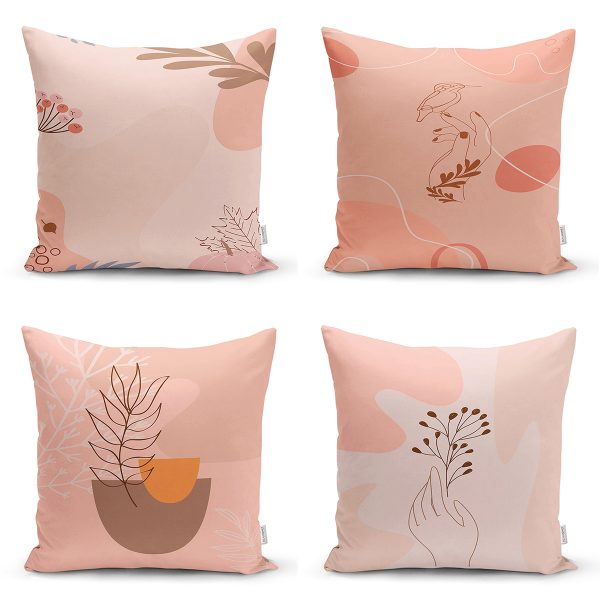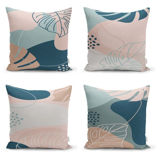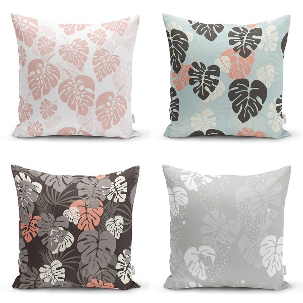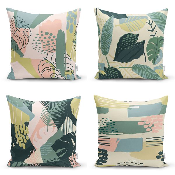 4’lü Renkli Bohem Yaprak Çizimli Özel Tasarım Modern Yastık Kırlent Kılıfı Seti