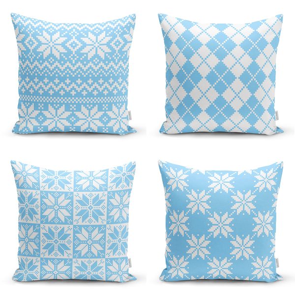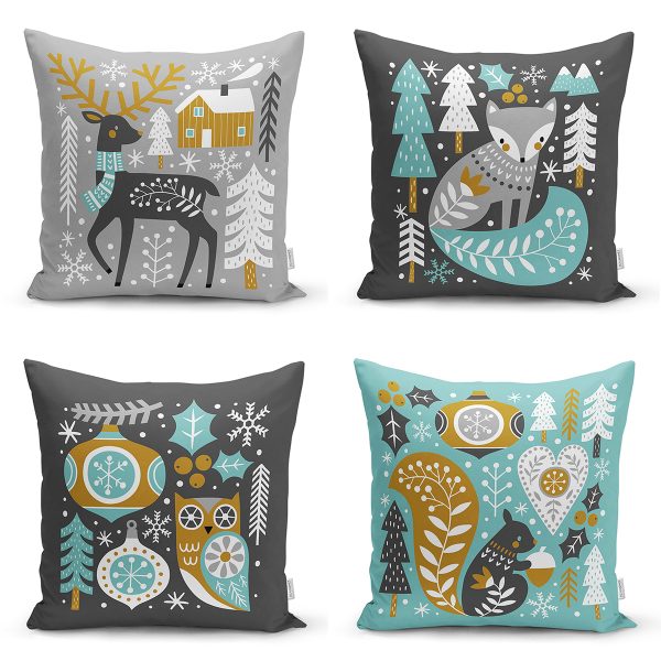 4’lü Renkli Zemin Üzerinde Yılbaşı Desenli Modern Yastık Kırlent Kılıf Seti