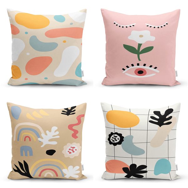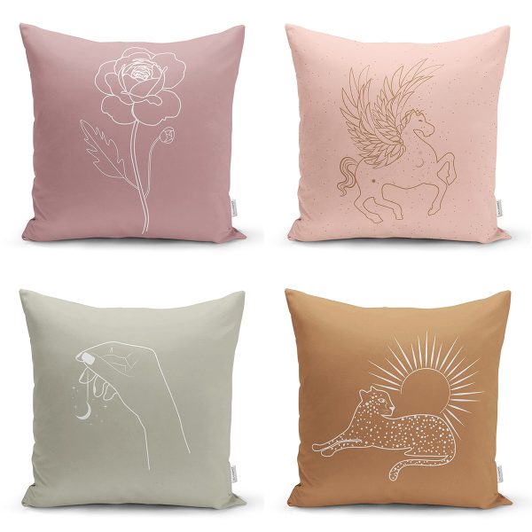 4’lü Renkli Zemin Üzerinde Onedraw Çizimli Modern Yastık Kırlent Kılıf Seti