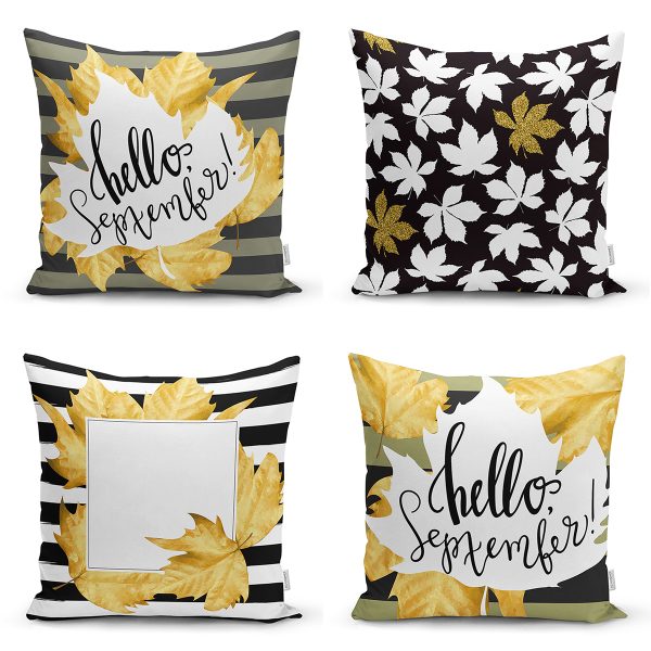 4’lü Beyaz Zemin Üzerinde Sonbahar Temalı Modern Yastık Kırlent Kılıf Seti