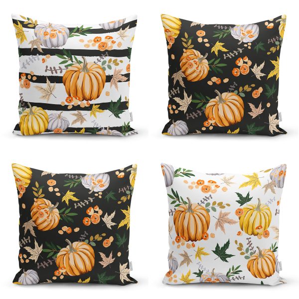 4’lü Kabak Motifli Dijital Baskılı Dekoratif Yastık Kırlent Kılıfı