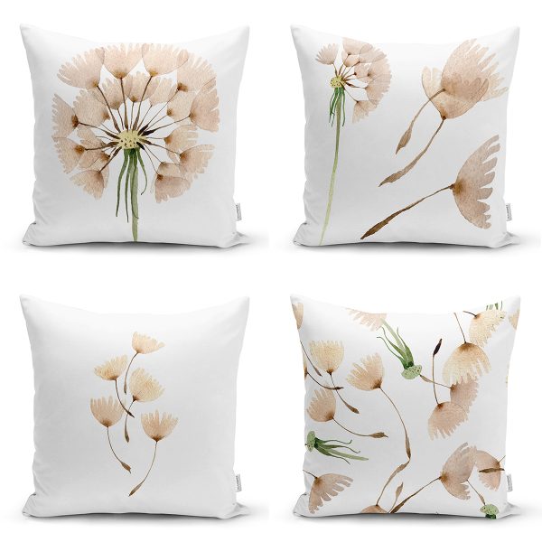 4’lü Beyaz Zemin Üzerinde Çiçek Desenli Modern Yastık Kırlent Kılıf Seti
