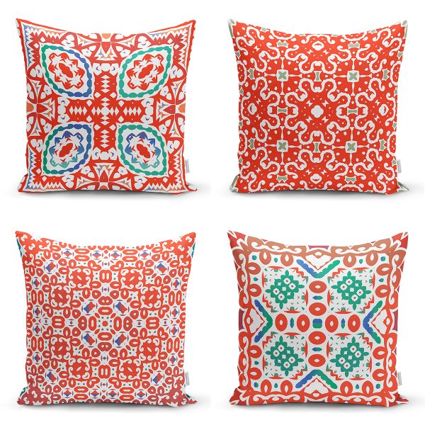4’lü Renkli Zemin Üzerinde Geometrik Çizimli Modern Yastık Kırlent Kılıf Seti