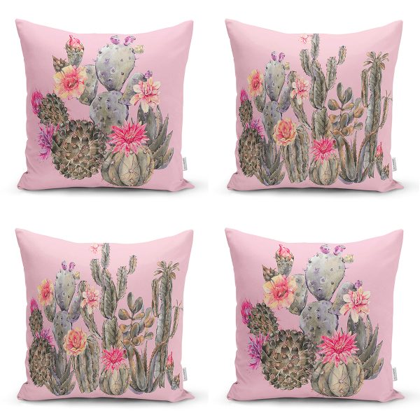 4’lü Renkli Zemin Üzerinde Kaktüs Desenli Modern Yastık Kırlent Kılıf Seti