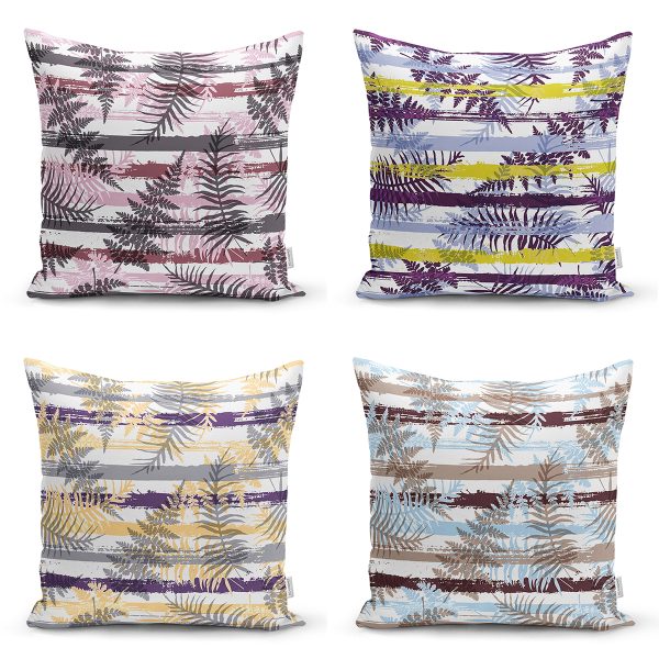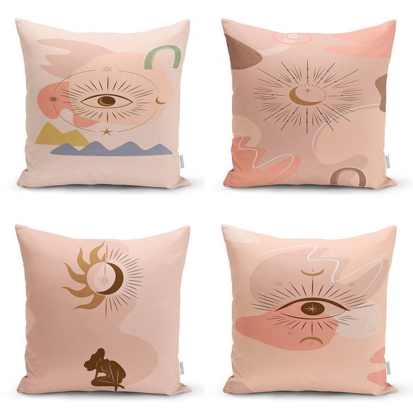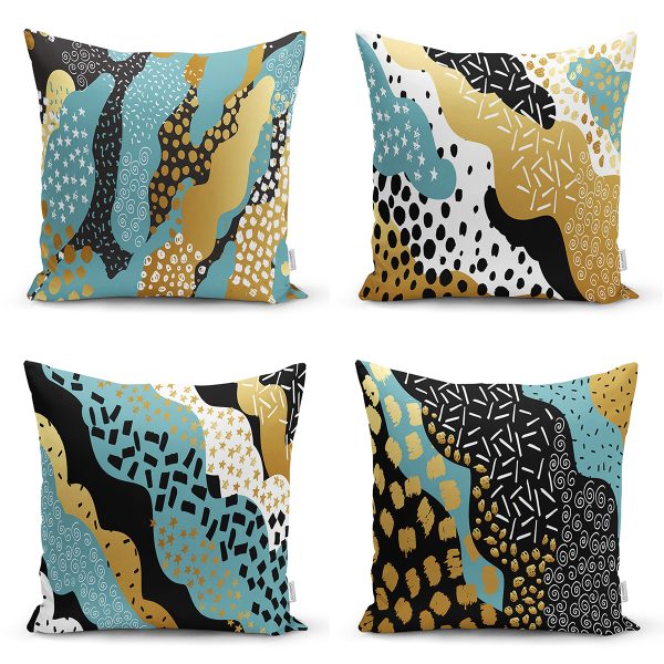 4’lü Renkli Zemin Üzerinde Gold Detaylı Soyut Çizimli Modern Yastık Kırlent Kılıf Seti