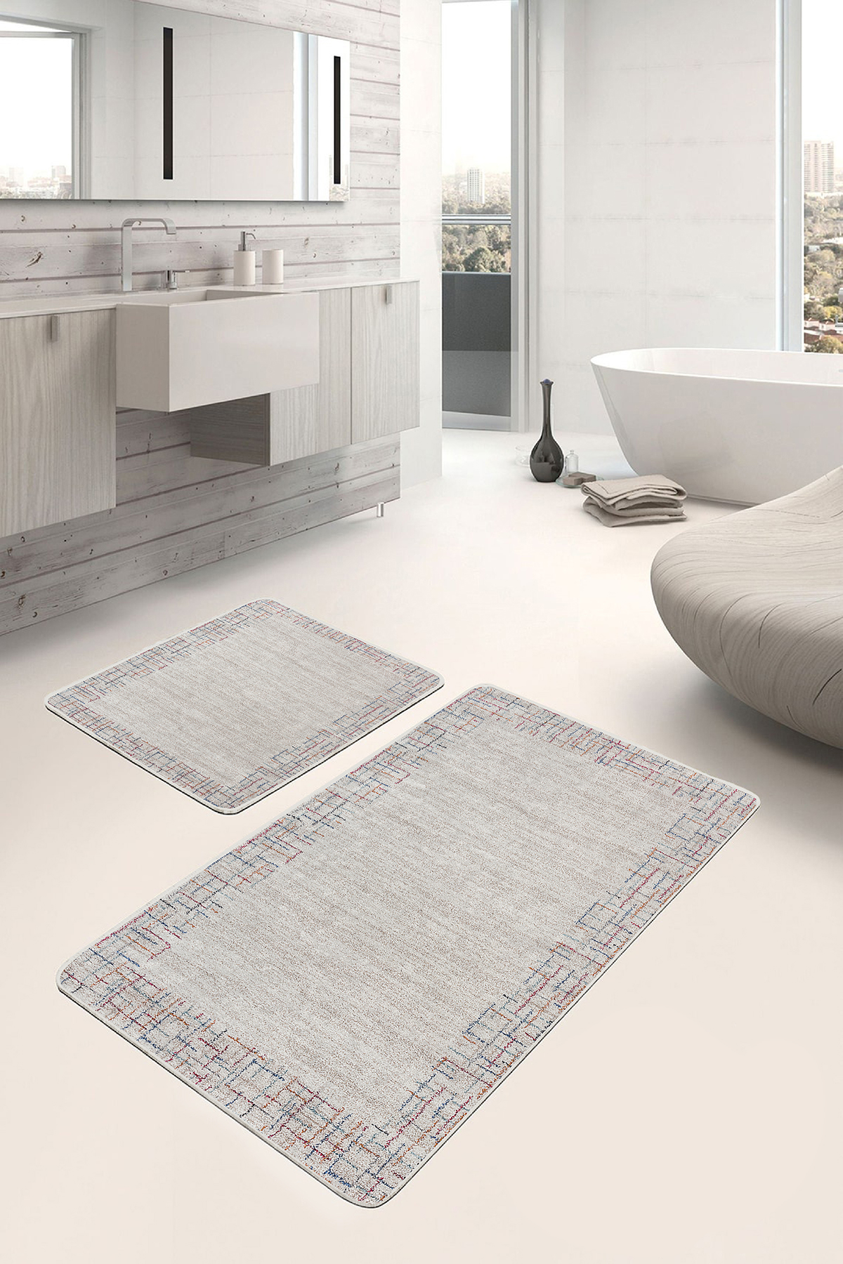 RealHomes Dijital Baskılı Kaymaz Tabanlı 2’li Banyo Paspası, kumaş seçimi ve dikiş detaylarıyla şık bir dekorasyon öğesi olarak kullanımınıza sunulmaktadır. Her bir desen RealHomes tasarımcıları tarafından özenle tasarlanmış ve satışa sunulmuştur. Fotoğraf kalitesinde canlı ve gerçekçi baskılarımız yıkamaya ve kullanıma bağlı olarak solma yapmaz, yıllar boyu ilk günkü özelliğini korur.