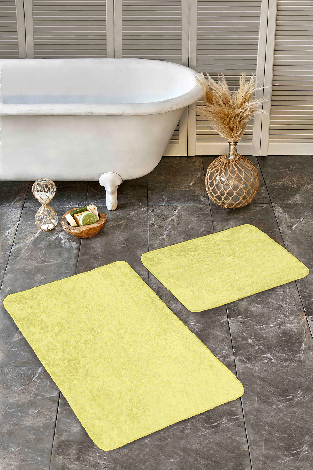2’li Set Düz Renk Sarı 2’li Banyo & Mutfak Paspas Takımı