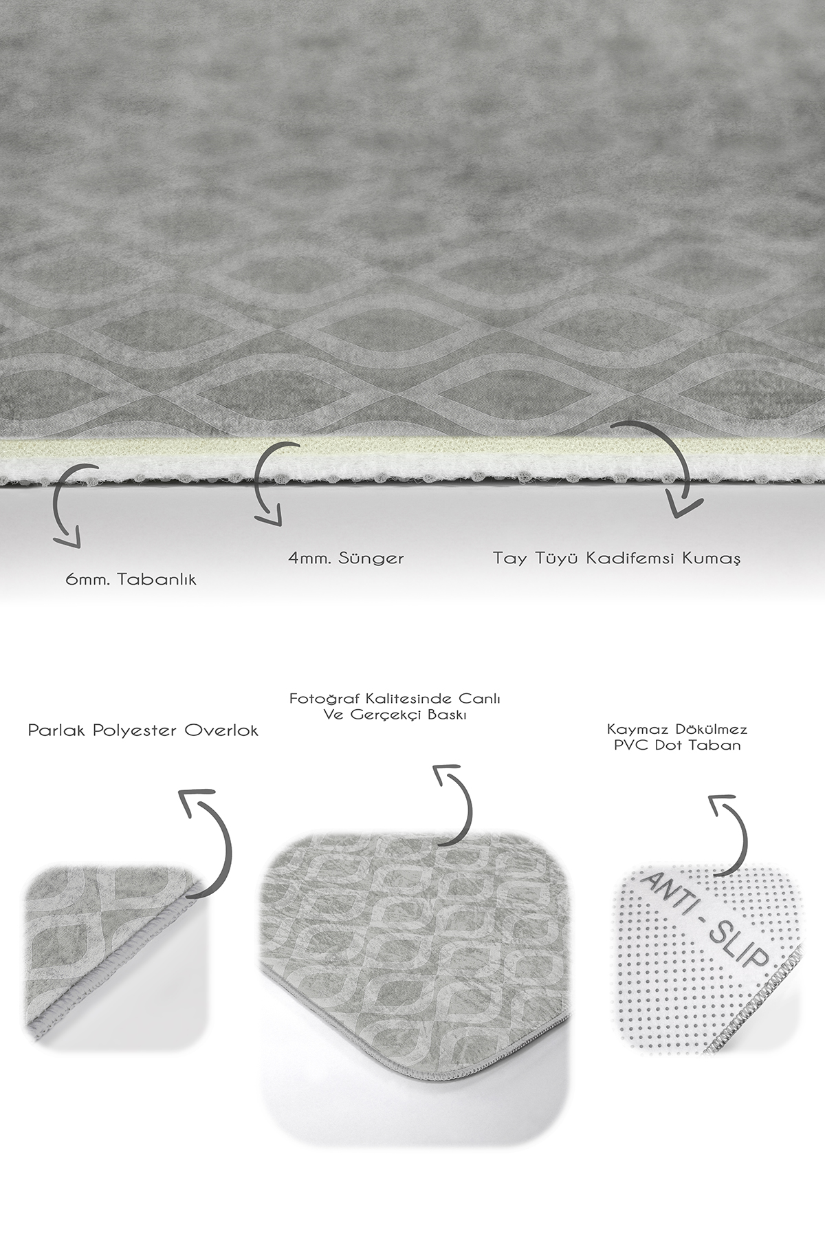 Tabanlık ve Dolgu: 6 mm Kaymaz dokuma tabanlıdır.