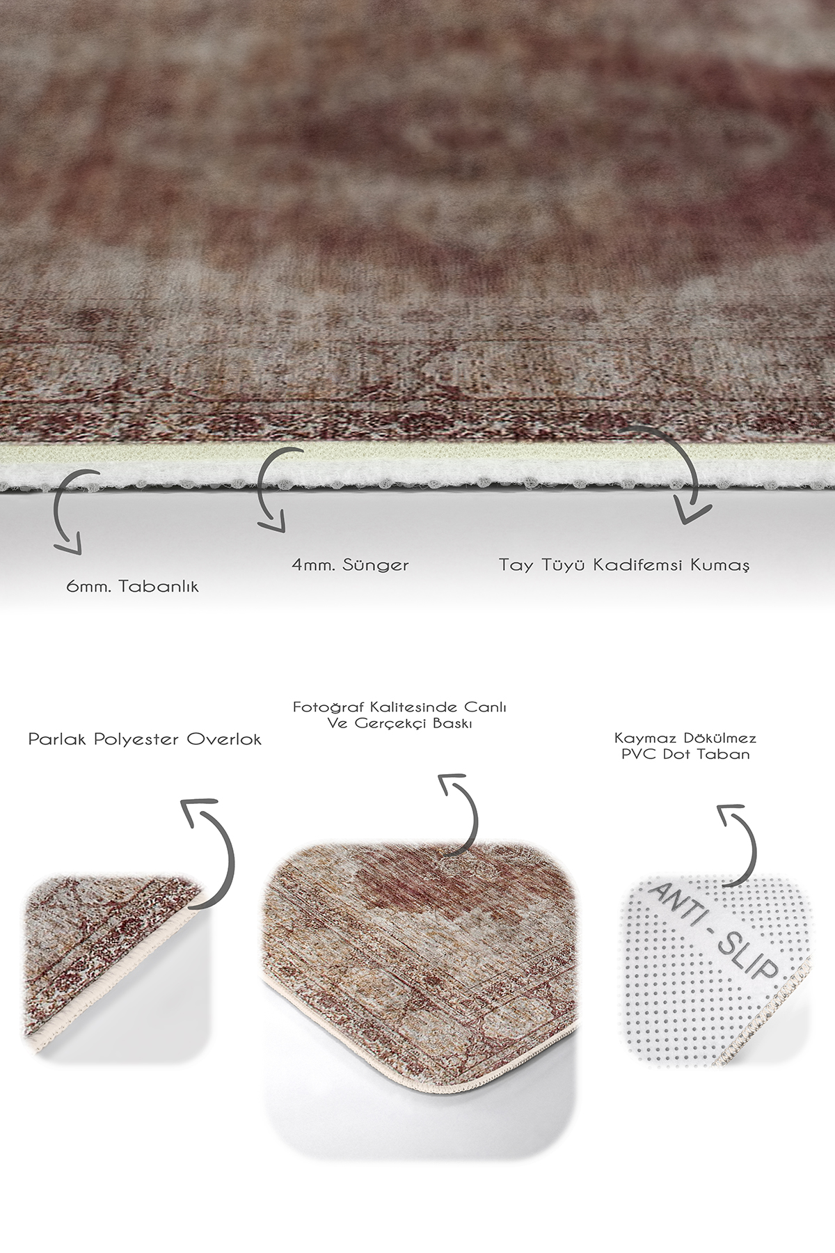 Tabanlık ve Dolgu: 6 mm Kaymaz dokuma tabanlıdır.