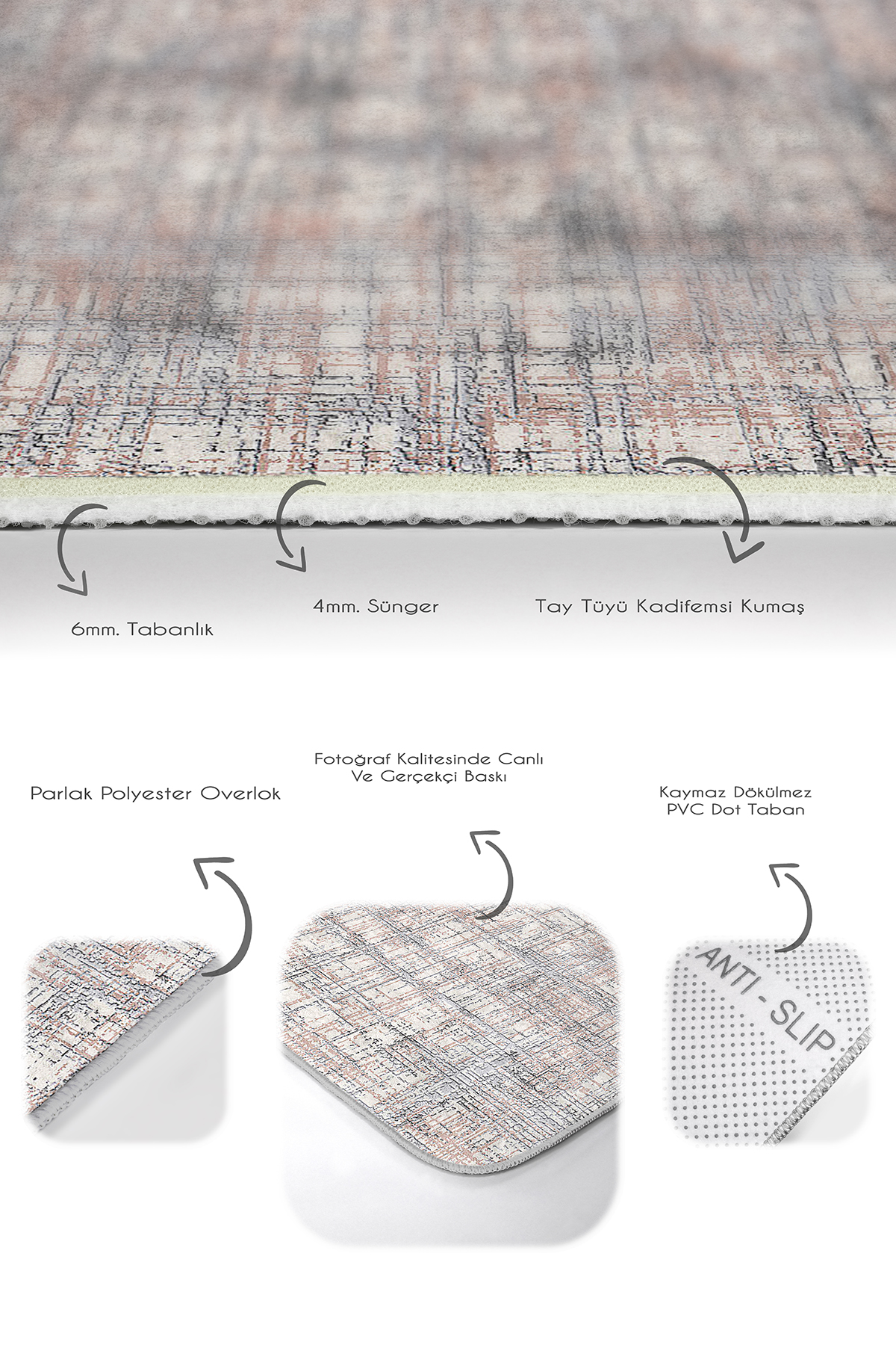 Tabanlık ve Dolgu: 6 mm Kaymaz dokuma tabanlıdır.