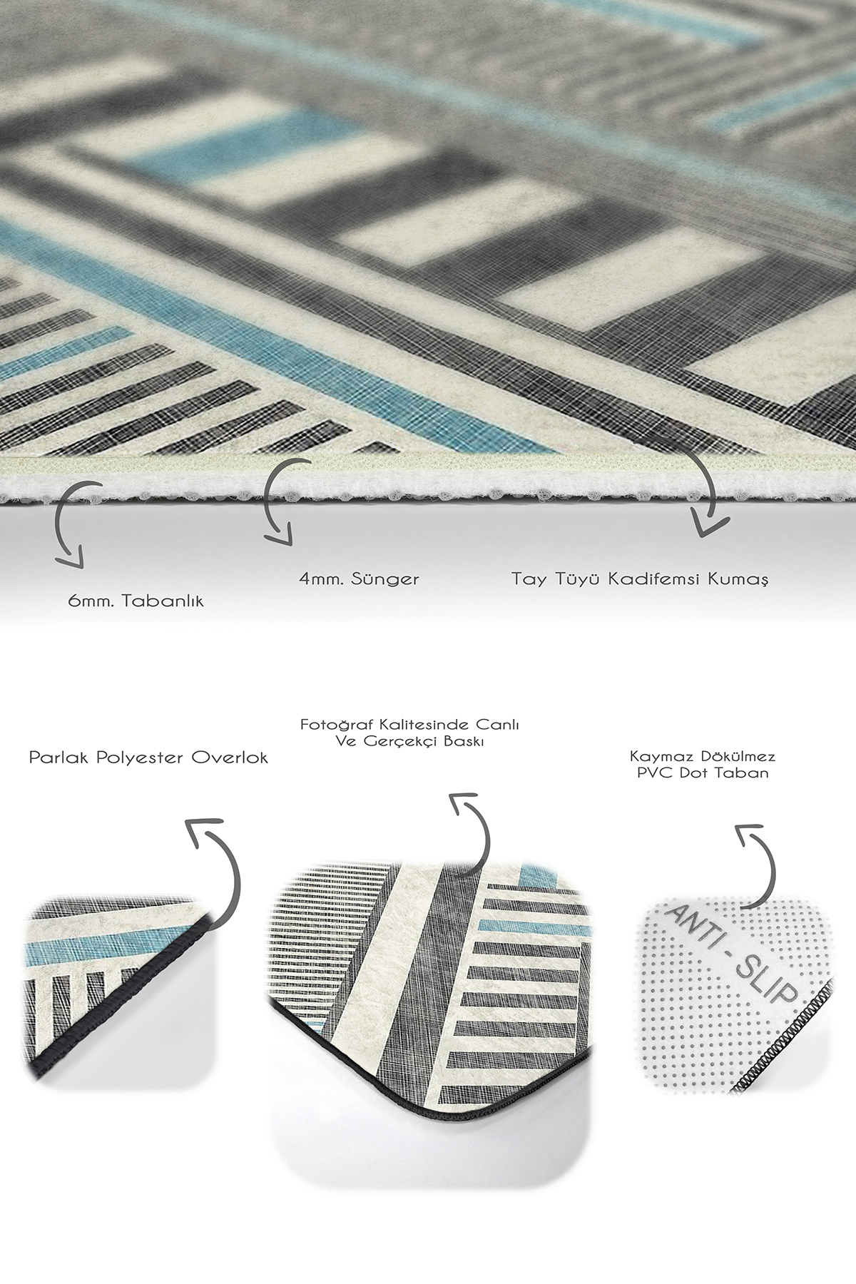 Tabanlık ve Dolgu: 6 mm Kaymaz dokuma tabanlıdır.