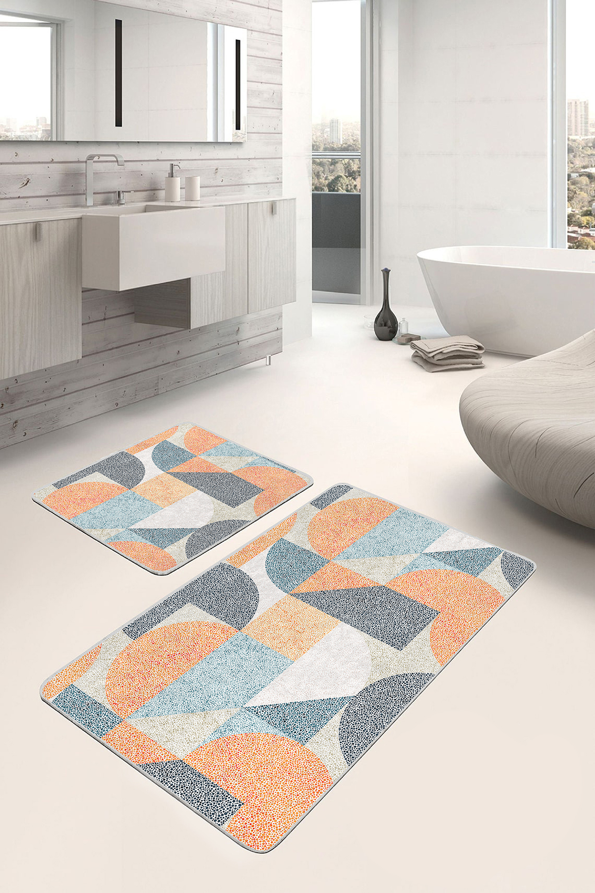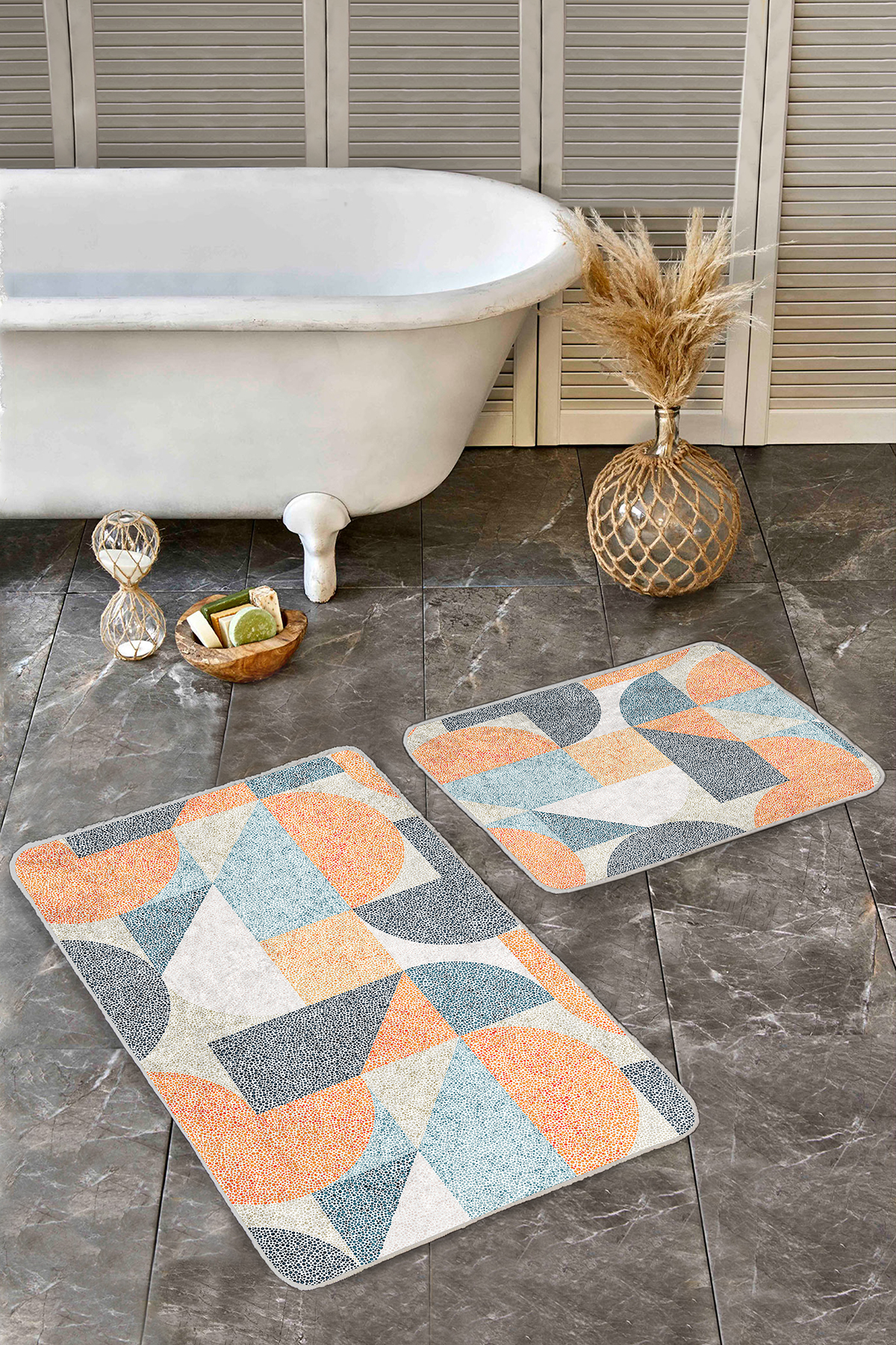 RealHomes Dijital Baskılı Kaymaz Tabanlı 2’li Banyo Paspası, kumaş seçimi ve dikiş detaylarıyla şık bir dekorasyon öğesi olarak kullanımınıza sunulmaktadır. Her bir desen RealHomes tasarımcıları tarafından özenle tasarlanmış ve satışa sunulmuştur. Fotoğraf kalitesinde canlı ve gerçekçi baskılarımız yıkamaya ve kullanıma bağlı olarak solma yapmaz, yıllar boyu ilk günkü özelliğini korur.