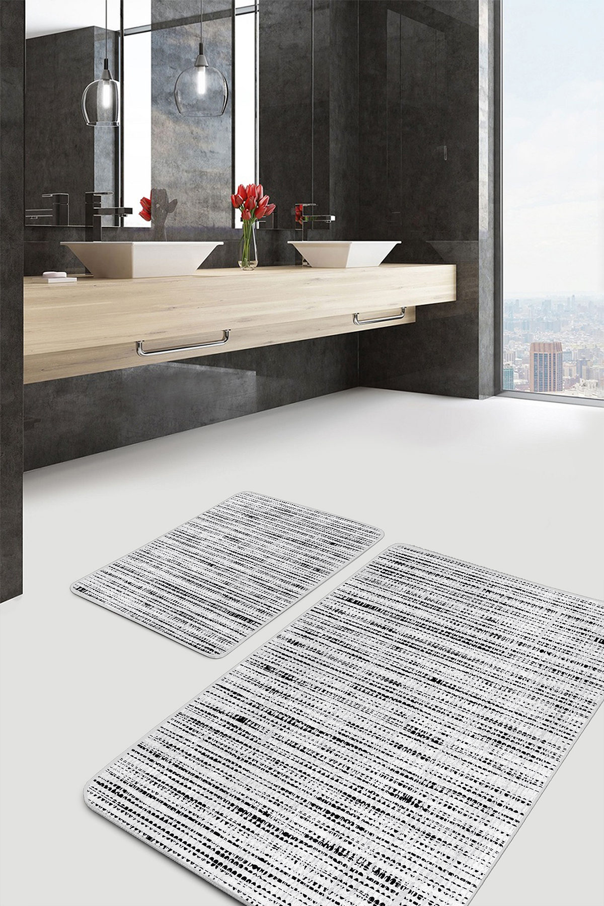 RealHomes Dijital Baskılı Kaymaz Tabanlı 2’li Banyo Paspası, kumaş seçimi ve dikiş detaylarıyla şık bir dekorasyon öğesi olarak kullanımınıza sunulmaktadır. Her bir desen RealHomes tasarımcıları tarafından özenle tasarlanmış ve satışa sunulmuştur. Fotoğraf kalitesinde canlı ve gerçekçi baskılarımız yıkamaya ve kullanıma bağlı olarak solma yapmaz, yıllar boyu ilk günkü özelliğini korur.