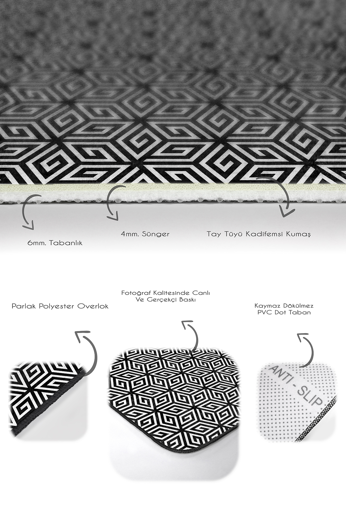 Tabanlık ve Dolgu: 6 mm Kaymaz dokuma tabanlıdır.