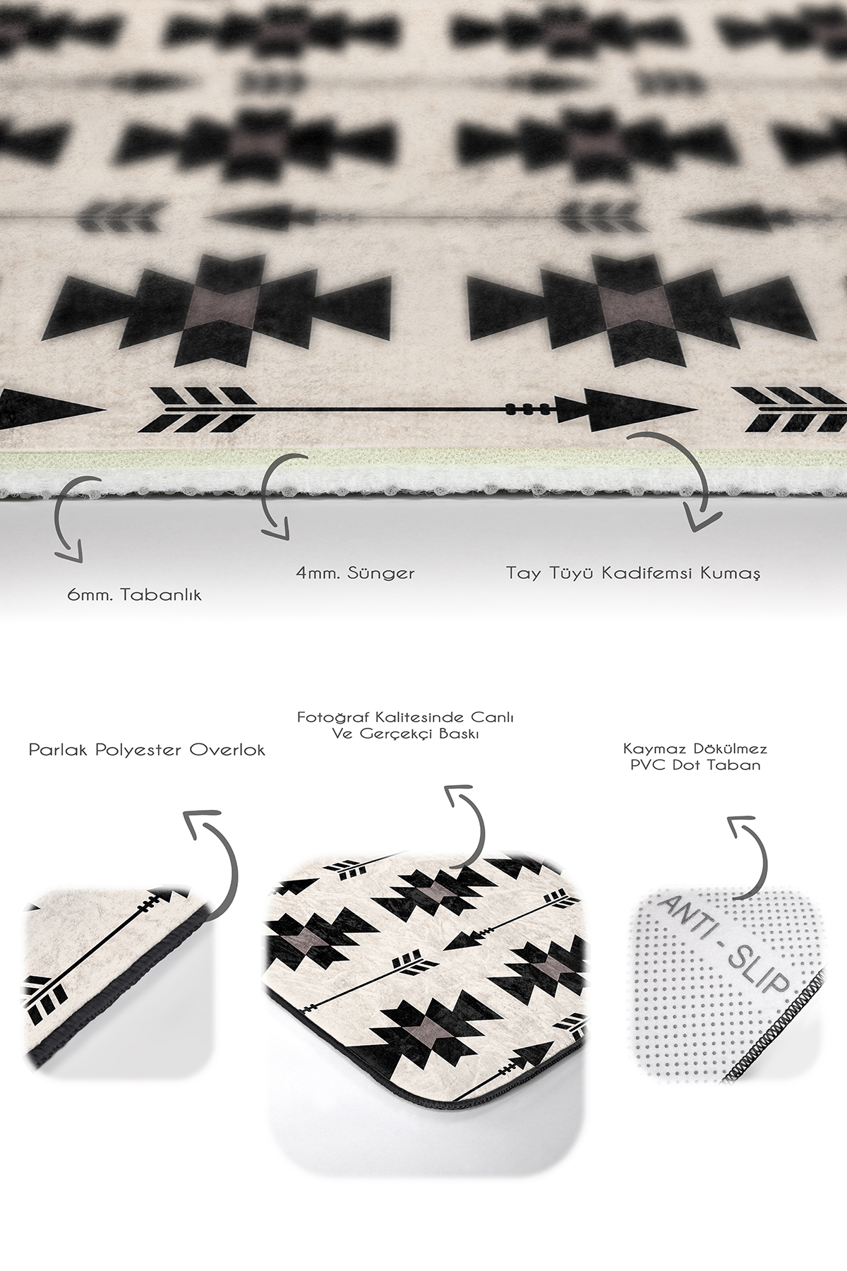 Tabanlık ve Dolgu: 6 mm Kaymaz dokuma tabanlıdır.
