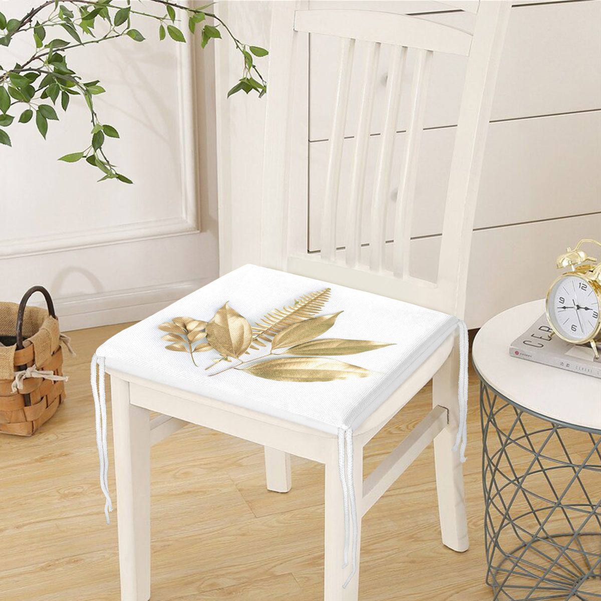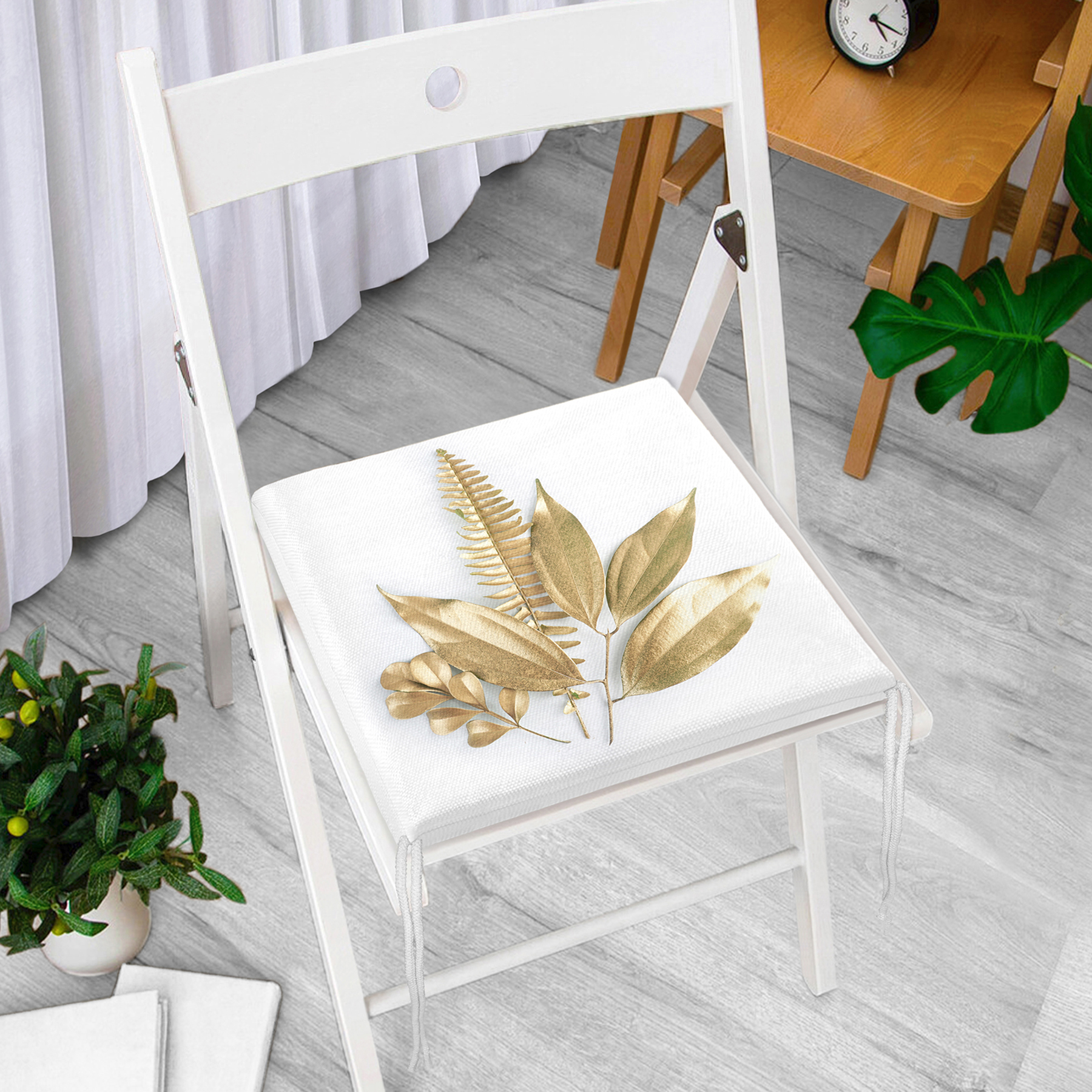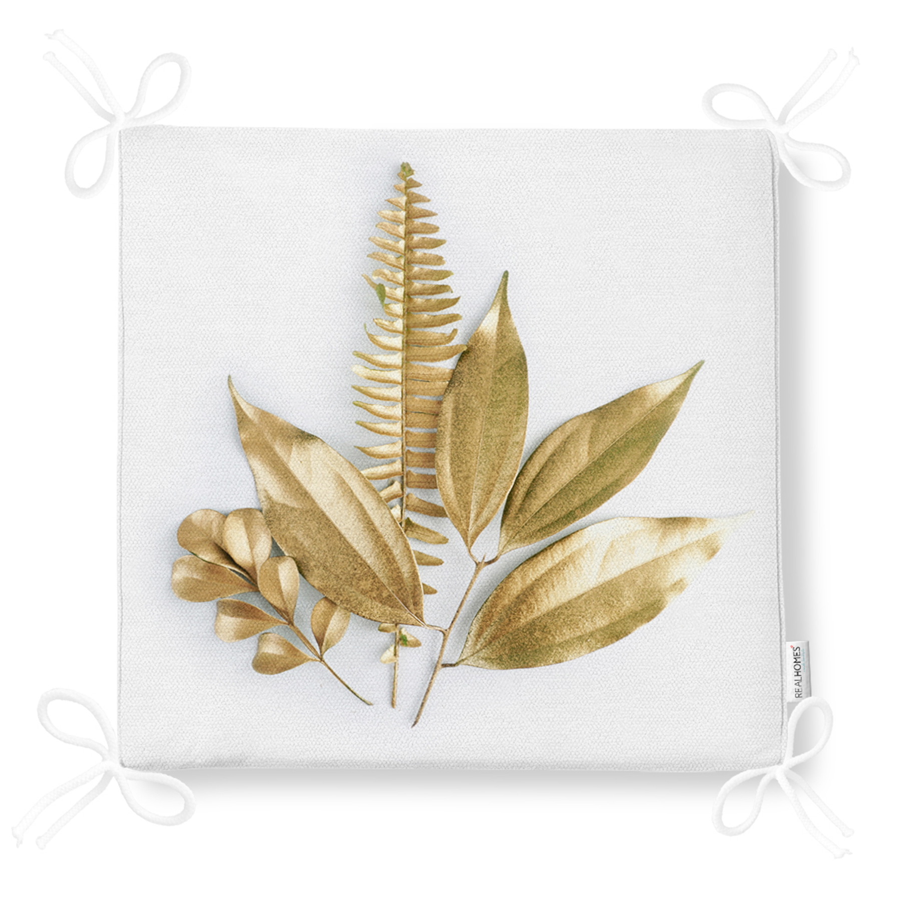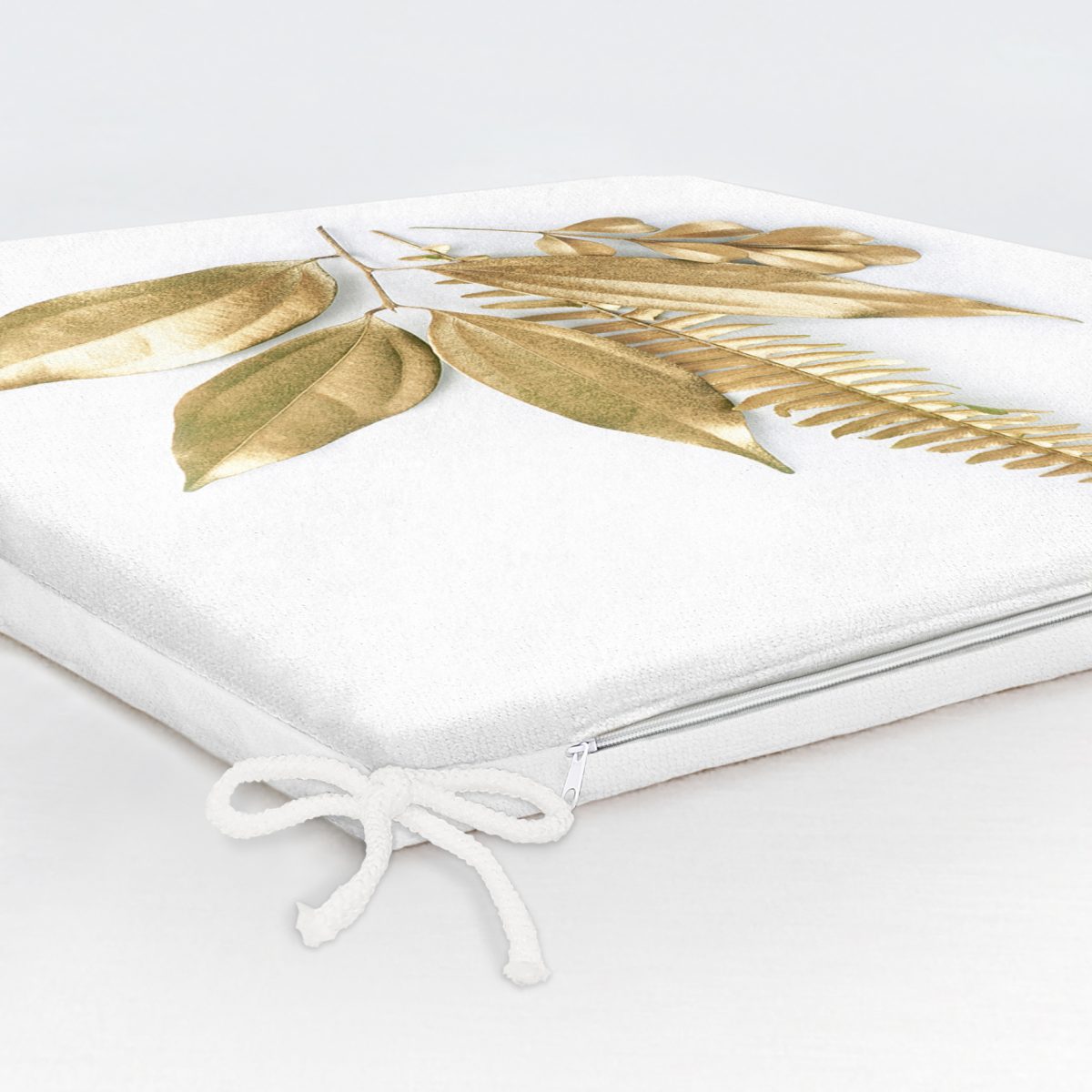 3D Altın Görünümlü Yapraklar Desenli Modern Fermuarlı Sandalye Minderi Realhomes