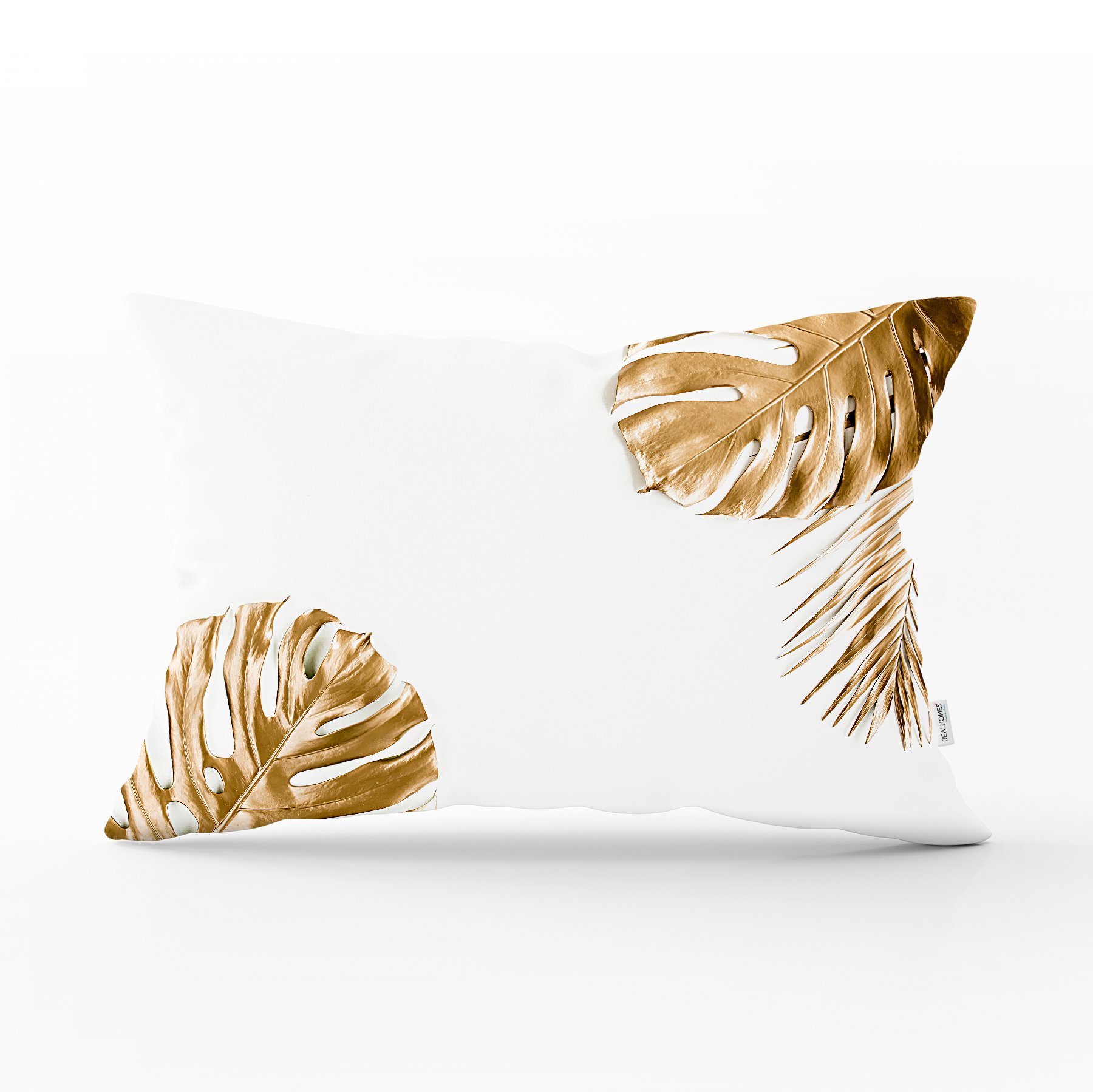 3D Altın Renkli Palmiye Yaprakları Desenli Dekoratif Dikdörtgen Yastık Kırlent Kılıfı