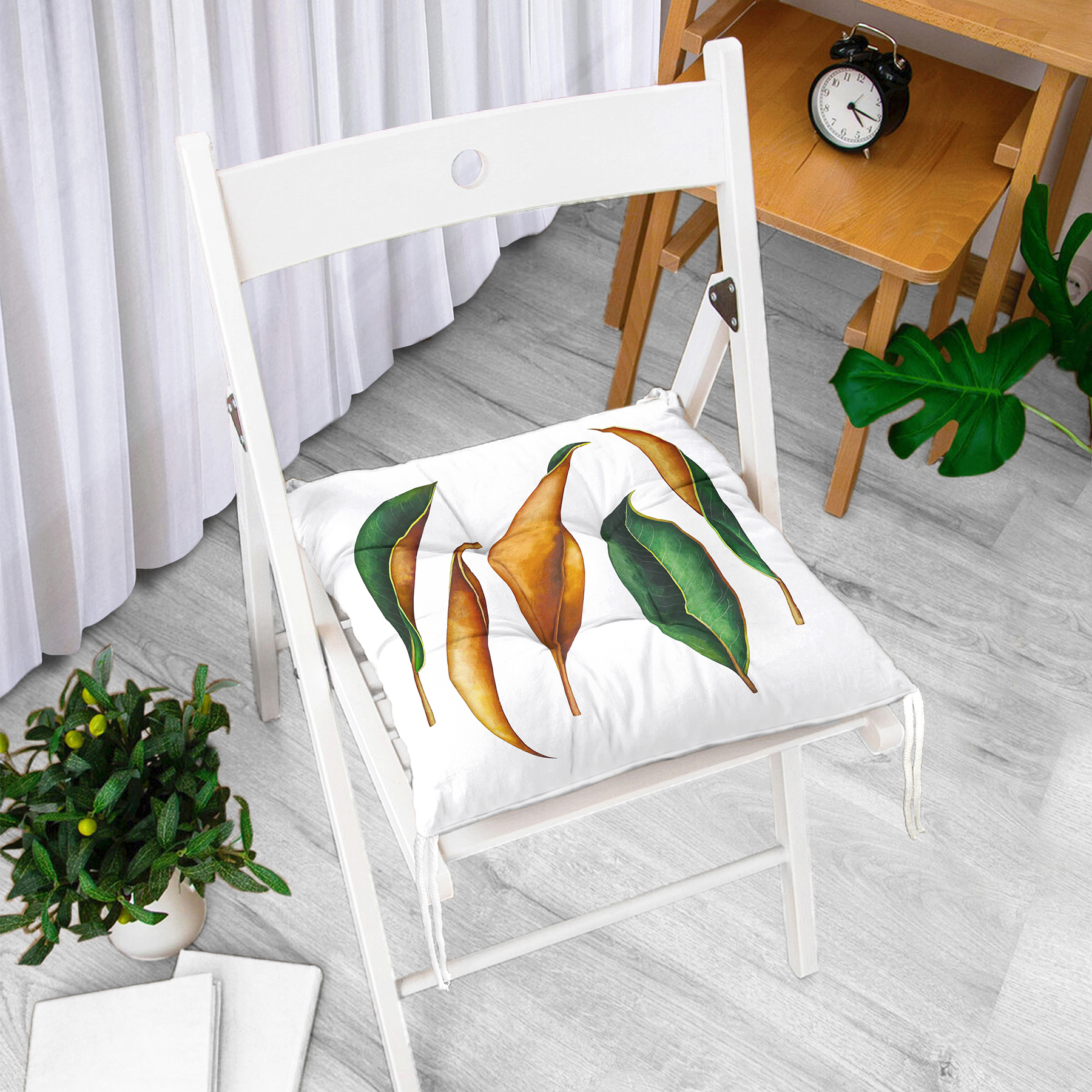 3D Tropik Yaprak Tasarımlı Modern Pofuduk Sandalye Minderi