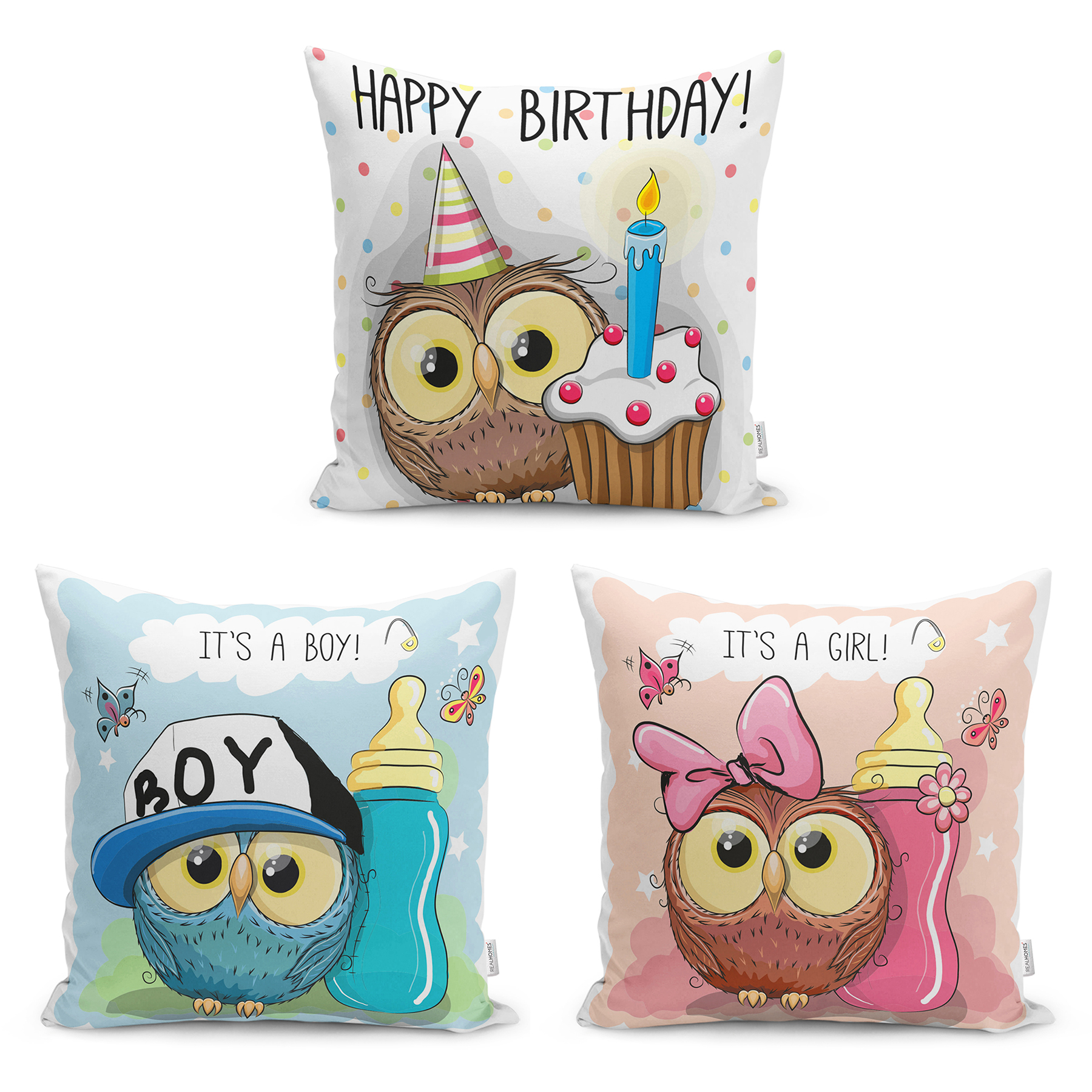 3’lü Çocuk Odası Baykuş Temalı Dekoratif Yastık Kırlent Kılıf Seti