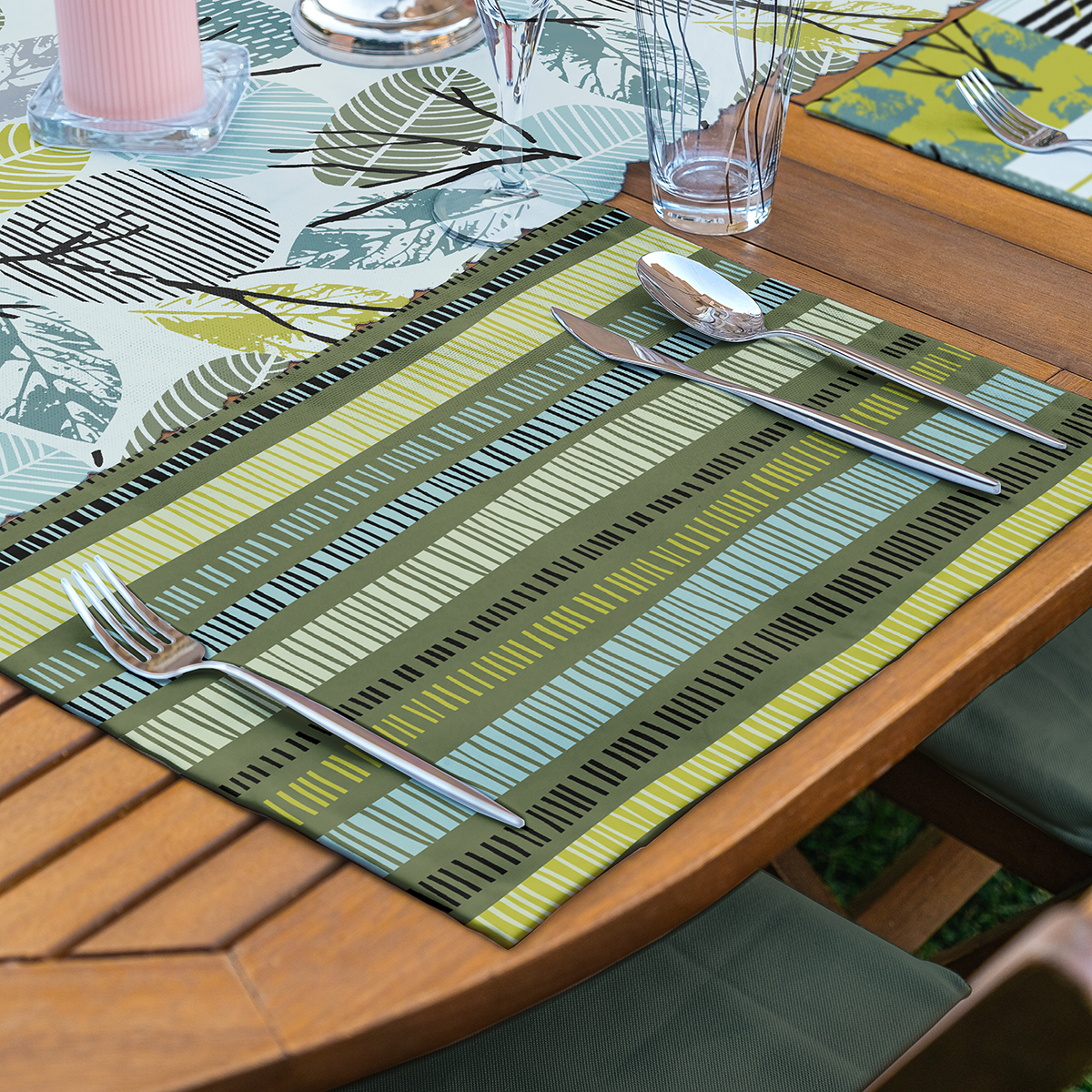 Leke tutmaz özellikli dijital baskılı suya dayanıklı kumaştan üretilen amerikan servisler, mutfağınızda, ve yemek odalarında zevkle kullanabileceğiniz şık ve kaliteli ürünlerdir. Günlük kullanıma uygun olduğu gibi özel davetlerinizde de zevkinizi ortaya koyacaktır.