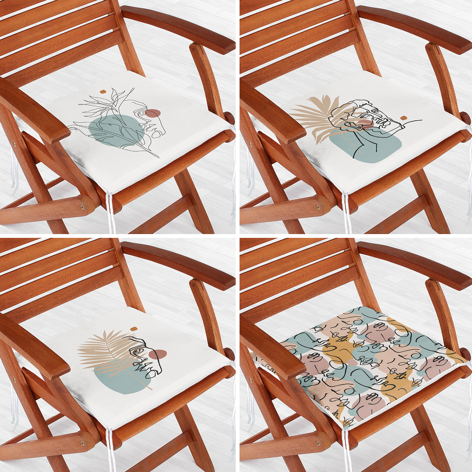 4’lü Antik Yunan Tanrısı Ve Portre Motifli Özel Tasarım Dijital Baskılı Modern Fermuarlı Sandalye Minderi Seti