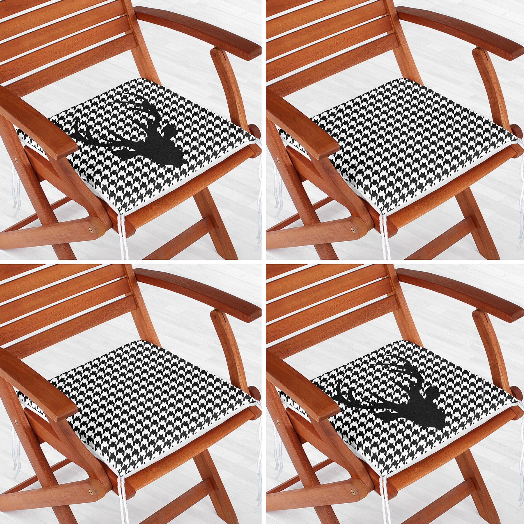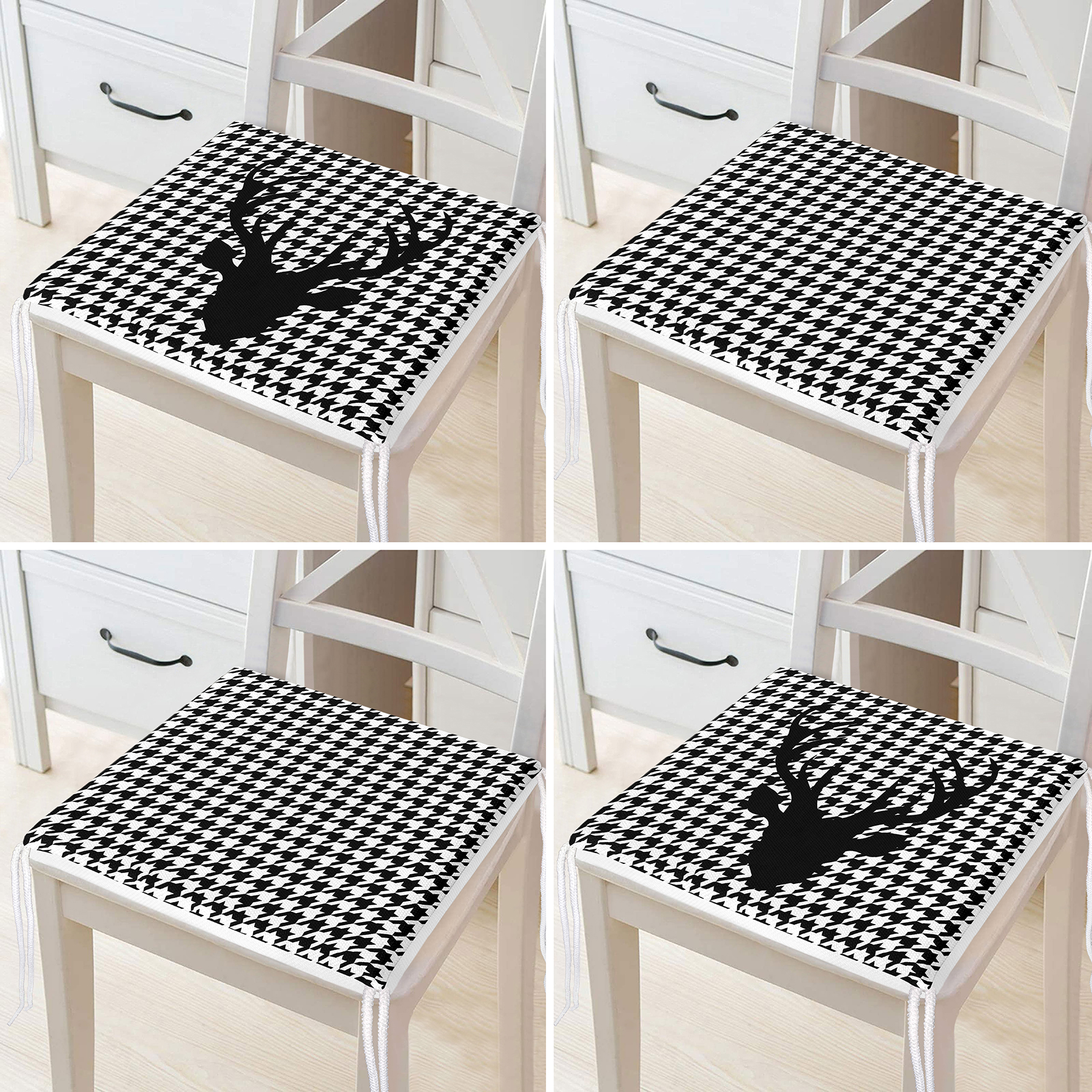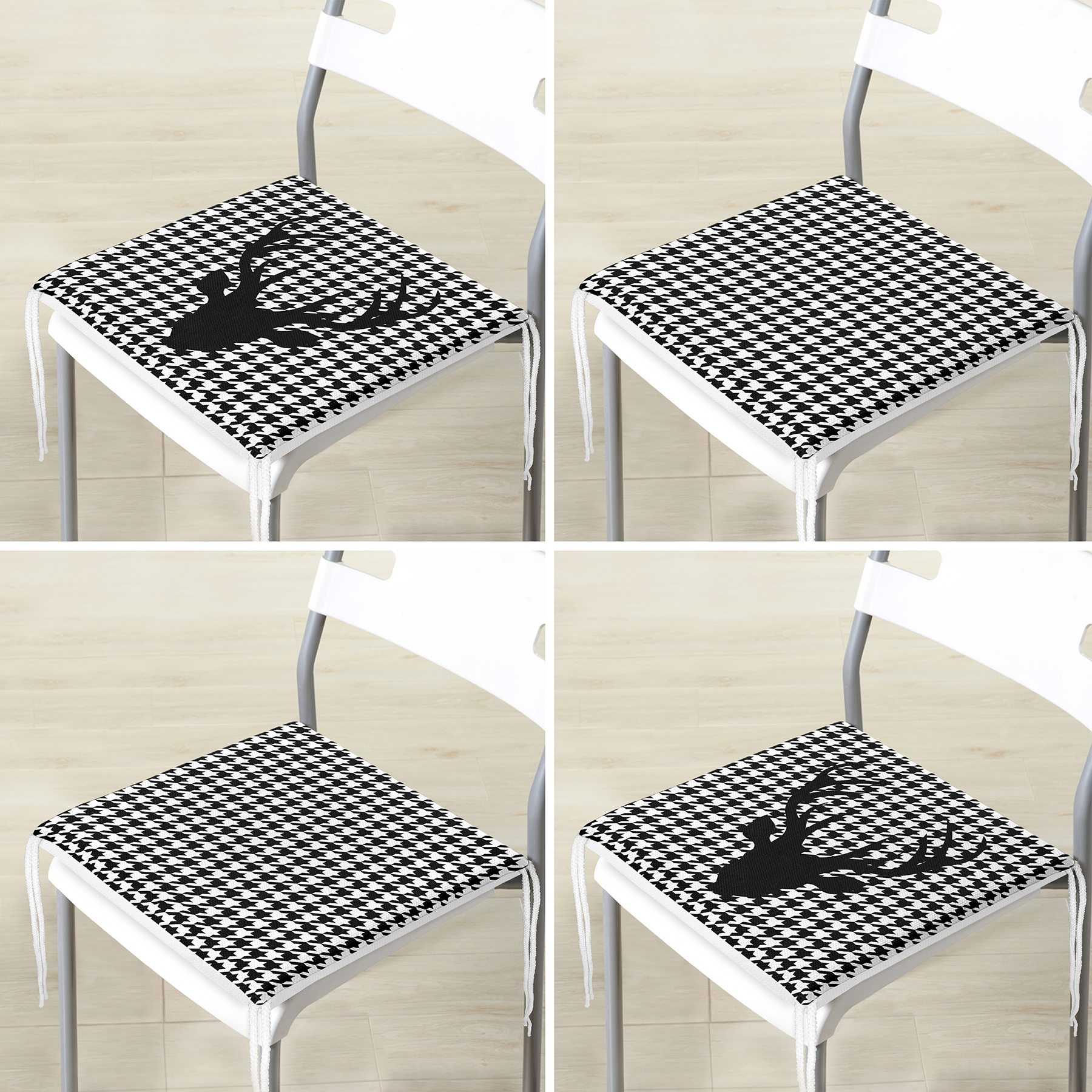 4’lü Balıksırtı Tasarımlı Geyik Motifli Fermuarlı Sandalye Minderi Seti