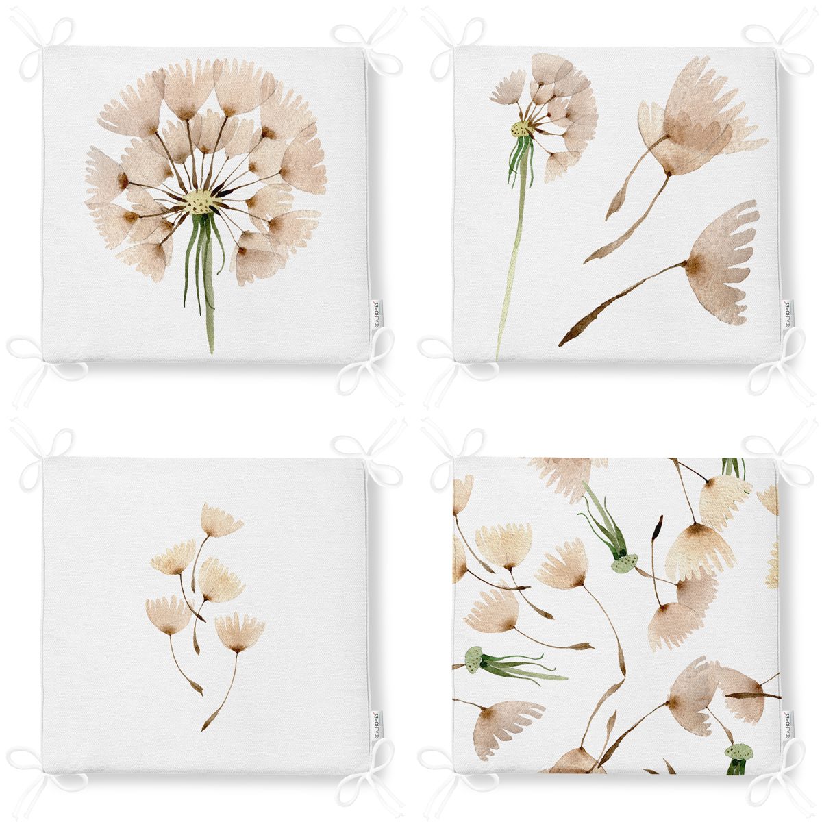 4’lü Beyaz Zemin Üzerinde Çiçek Desenli Modern Fermuarlı Sandalye Minderi Seti