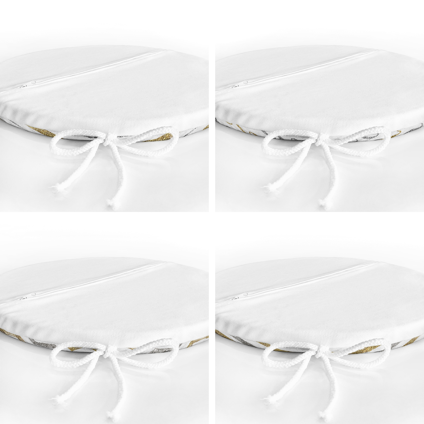 4'lü Beyaz Zemin Üzerinde Gold Detaylı Geometrik Desenli Modern Yuvarlak Fermuarlı Sandalye Minderi Seti Realhomes
