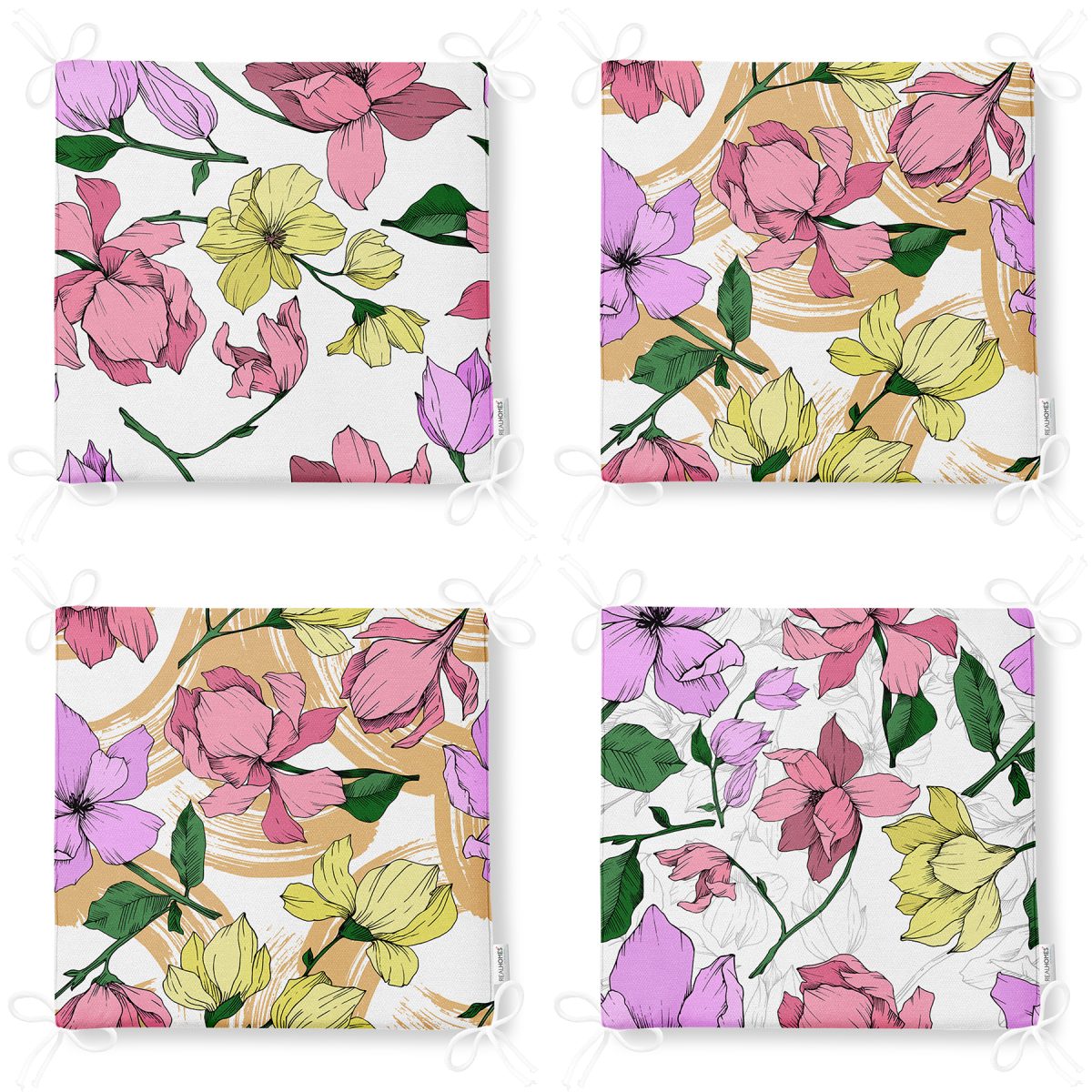 4'lü Beyaz Zemin Üzerinde Renkli Çiçek Desenli Modern Fermuarlı Sandalye Minderi Seti Realhomes