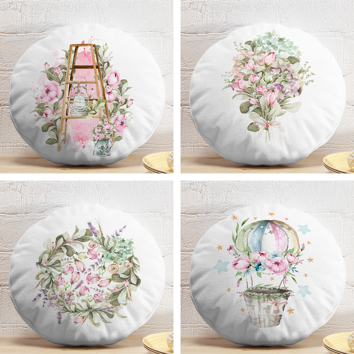 4'lü Çiçek Demetleri Özel Tasarım Dijital Baskılı Modern Yuvarlak Yastık Kırlent Kılıf Seti Realhomes
