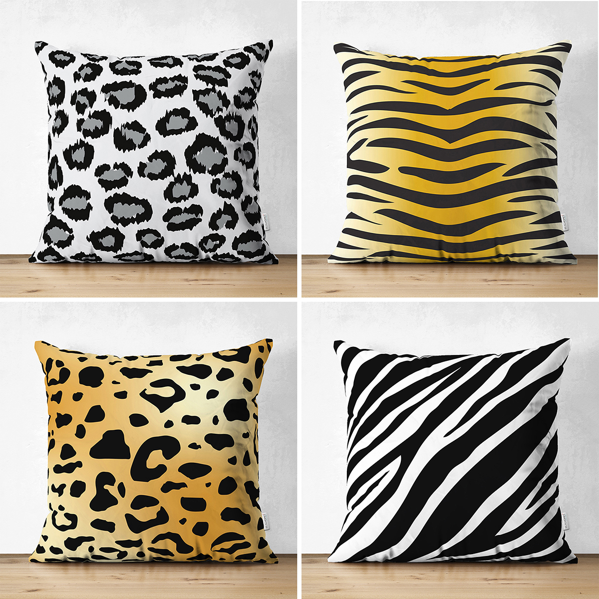 4’lü Çift Taraflı Zebra Motifli Özel Tasarım Modern Süet Yastık Kırlent Kılıfı Seti