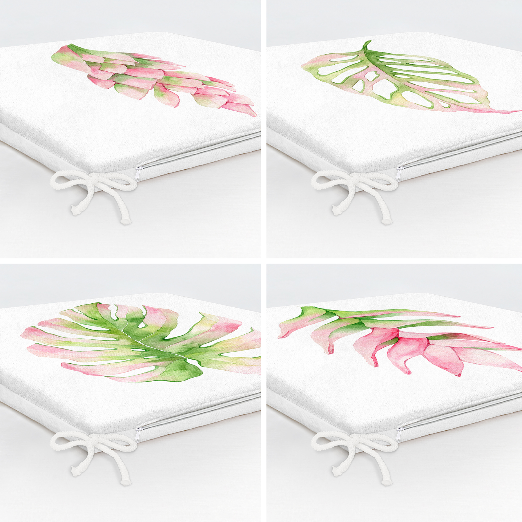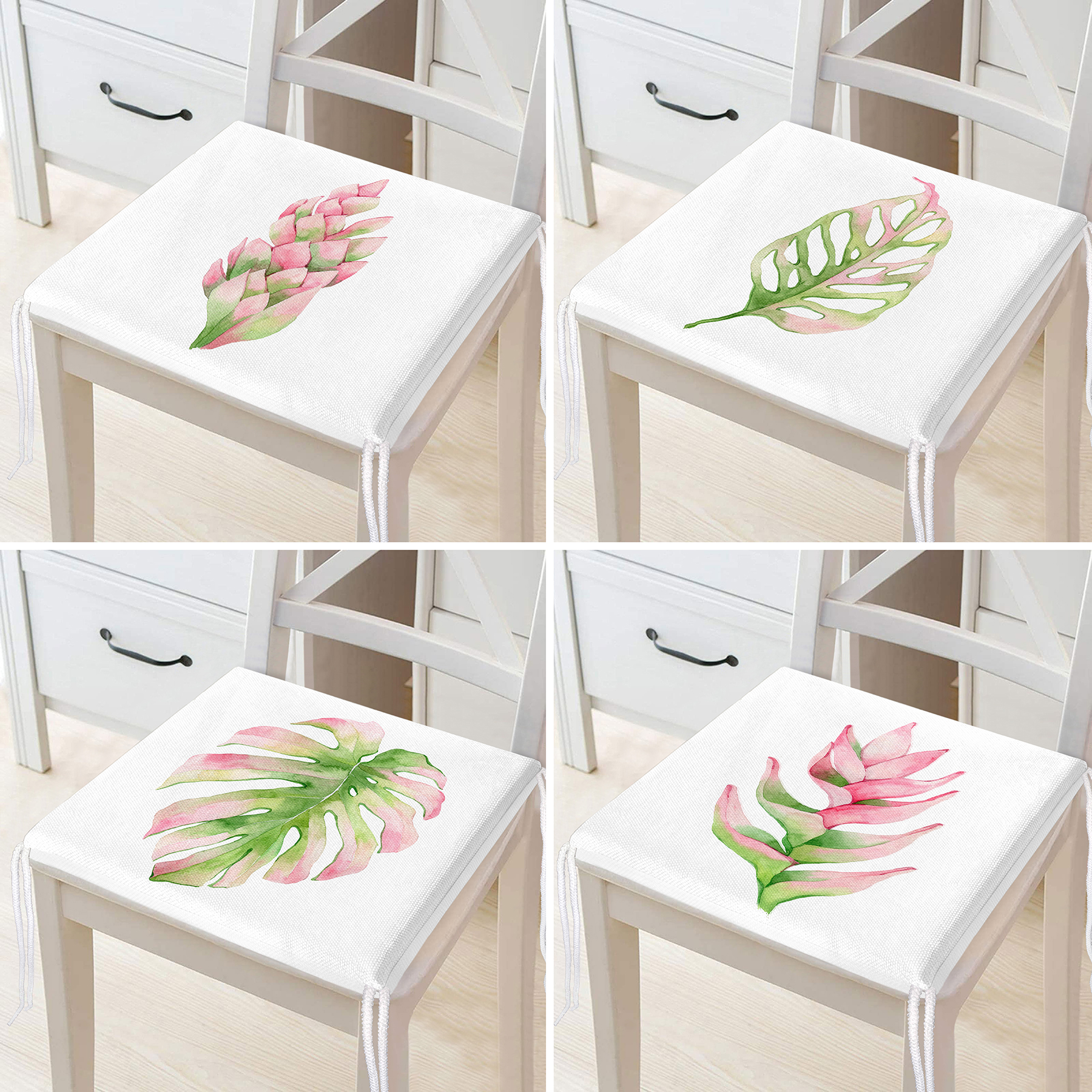 4’lü Egzotik Yaprak Tasarımlı Dijital Baskılı Modern Fermuarlı Sandalye Minderi Seti