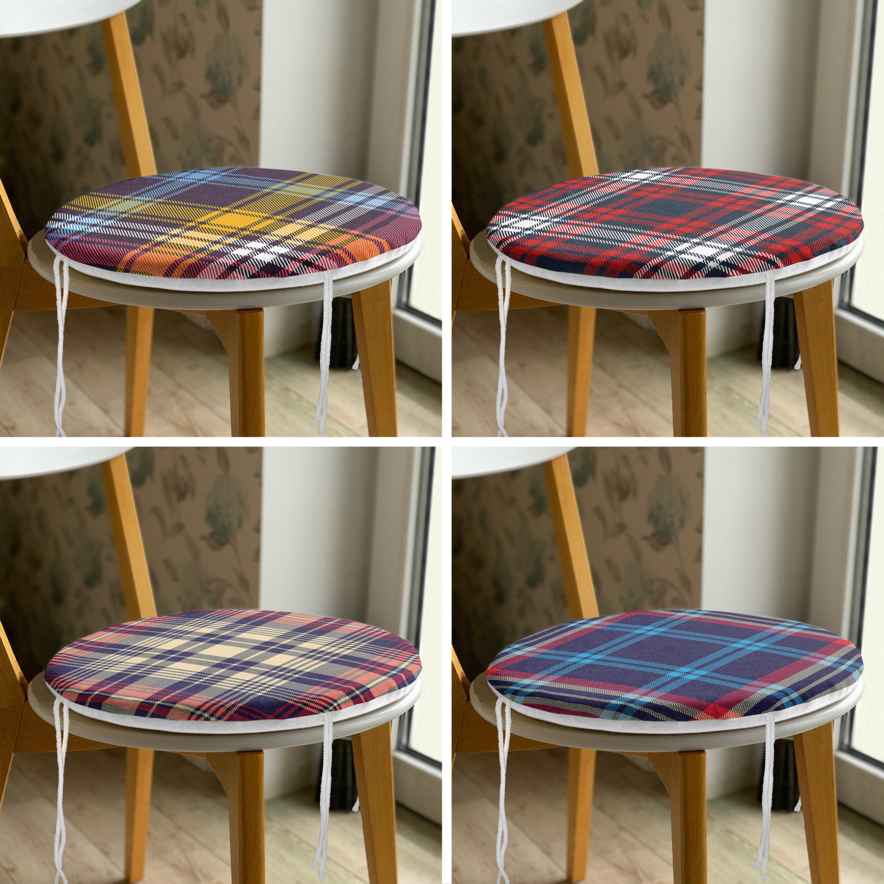 4’lü Ekose Özel Tasarım Yuvarlak Fermuarlı Sandalye Minderi Seti
