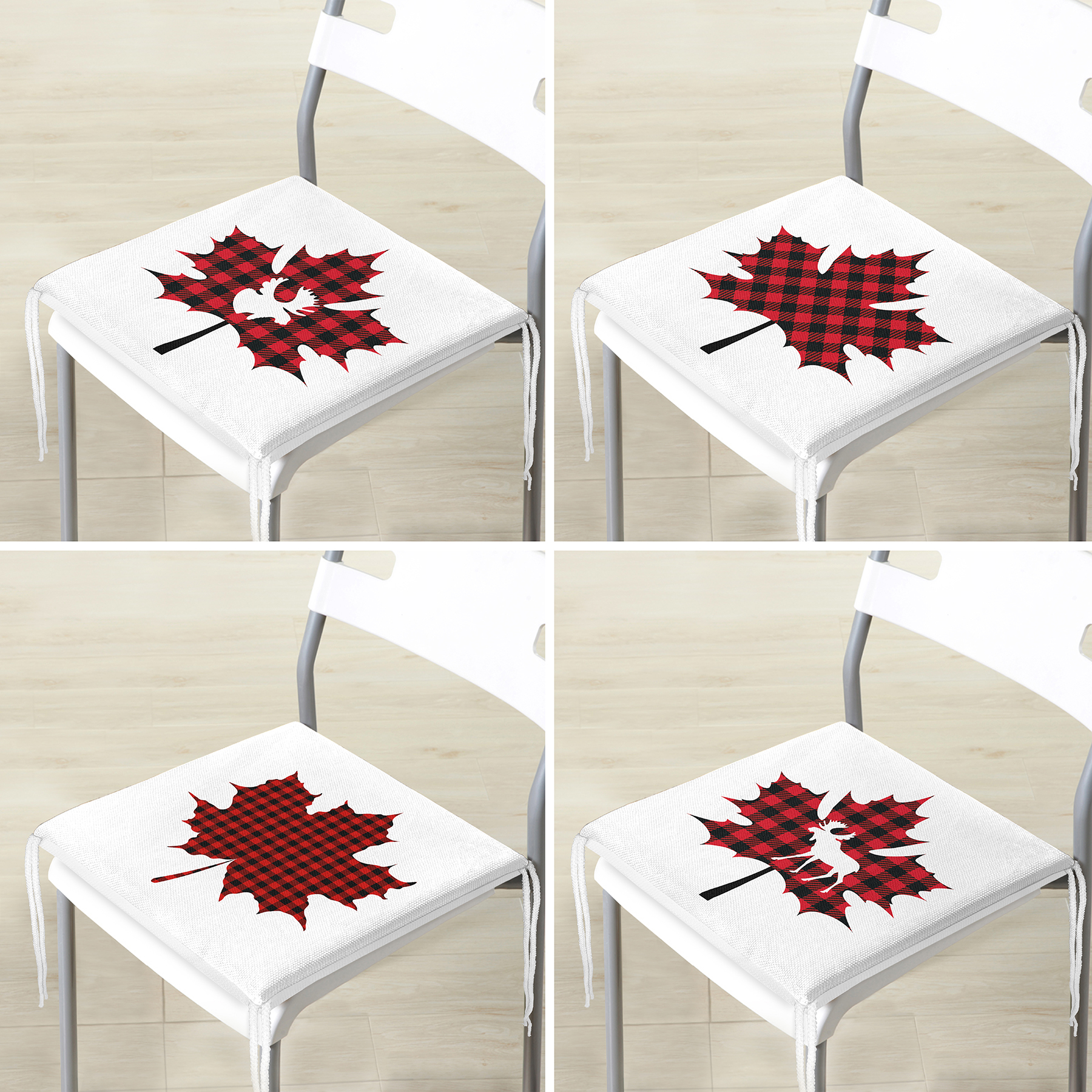 4’lü Ekose Yaprak Tasarımlı Dijital Baskılı Modern Fermuarlı Sandalye Minderi Seti