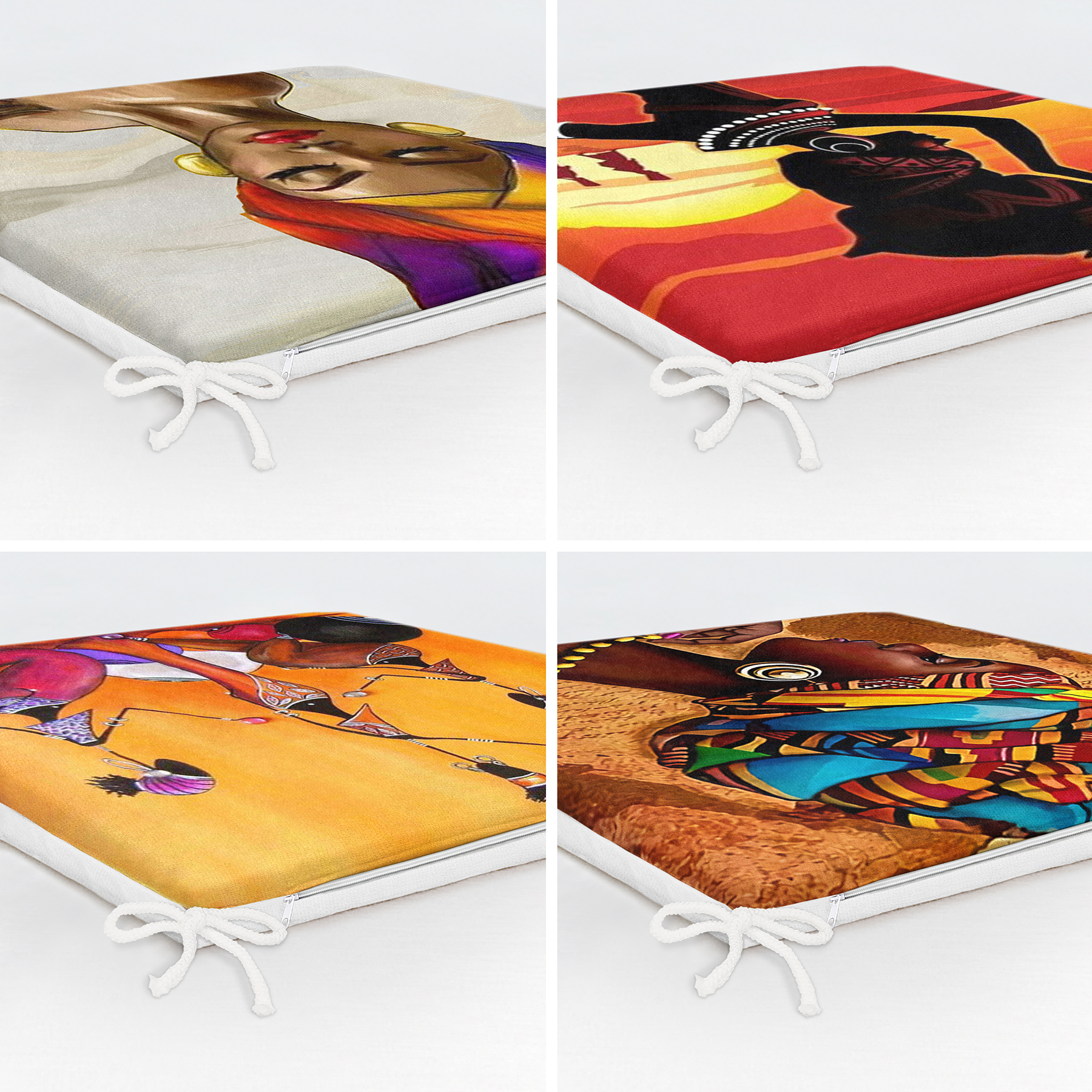4’lü Etnik Afrika Kadın Motifli Özel Tasarım Fermuarlı Sandalye Minderi Seti