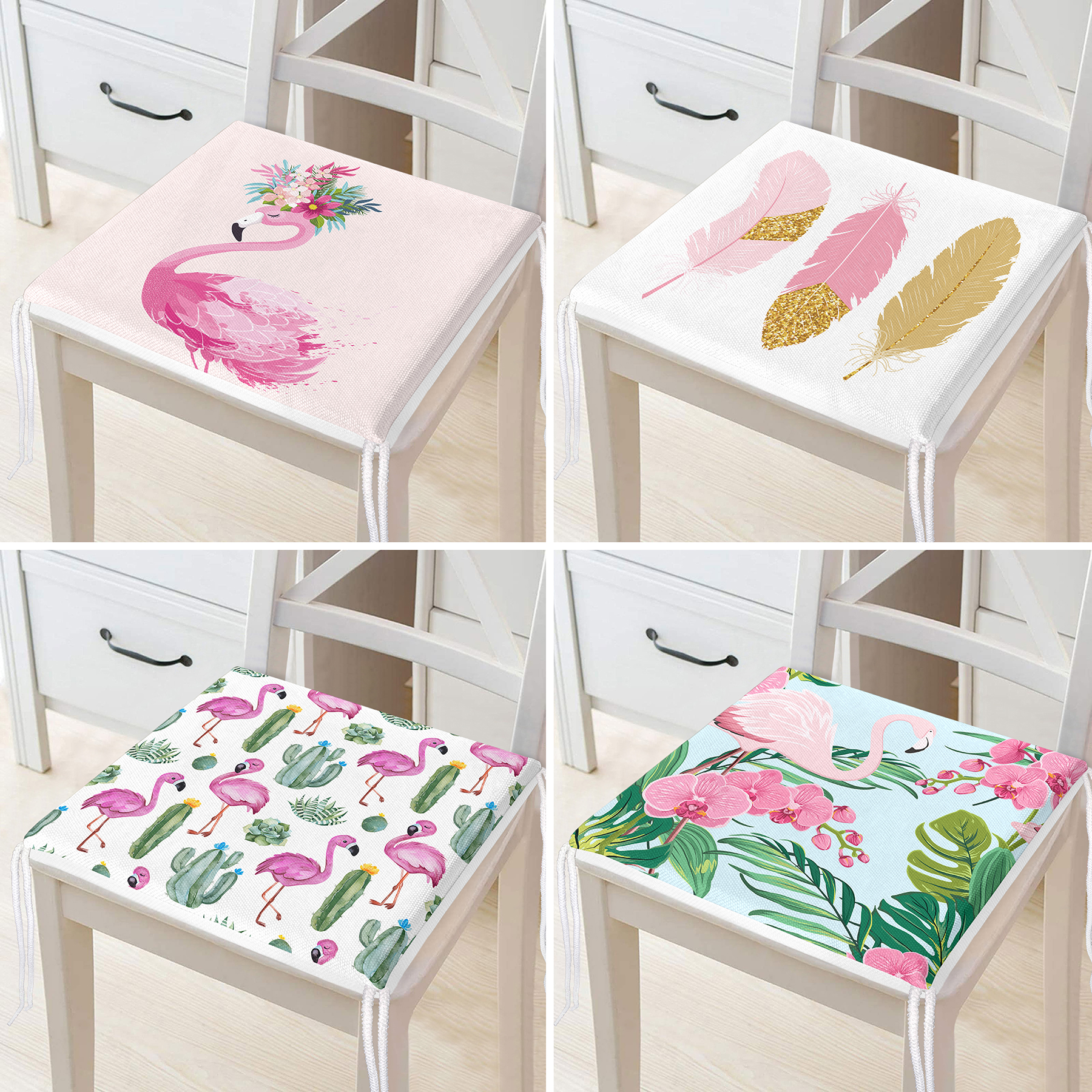 4’lü Flamingo Tasarımlı Renkli Dijital Baskılı Fermuarlı Sandalye Minderi Seti