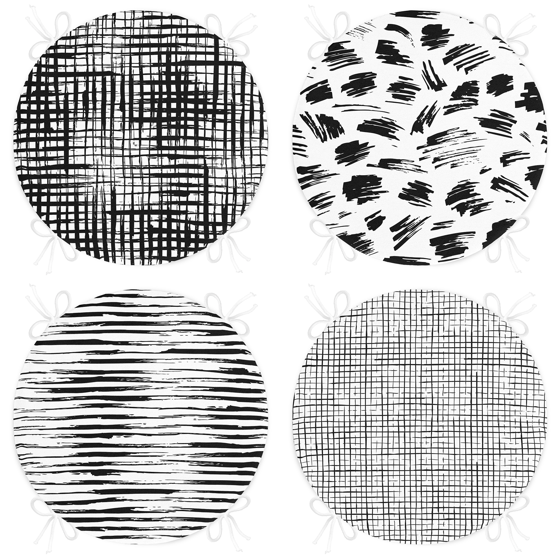 4'lü Geometrik Şekil Tasarımlı Modern Dijital Baskılı Yuvarlak Fermuarlı Sandalye Minderi Seti Realhomes