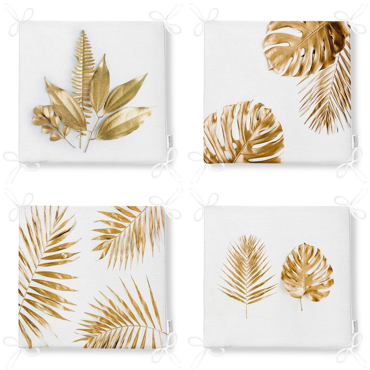 4’lü Gold Tasarımlı Yaprak Motifli Fermuarlı Sandalye Minderi Seti