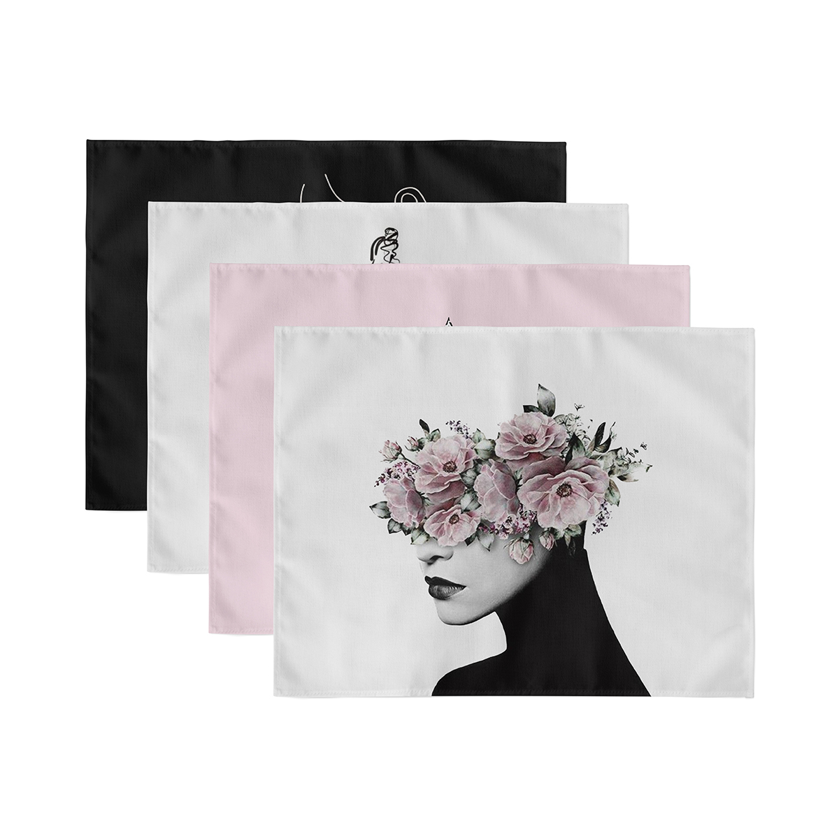 4’lü Kadın Silüet Motifli Özel Tasarım Dijital Baskılı Sunumluk – Sunum Altlığı – Amerikan Servis Seti