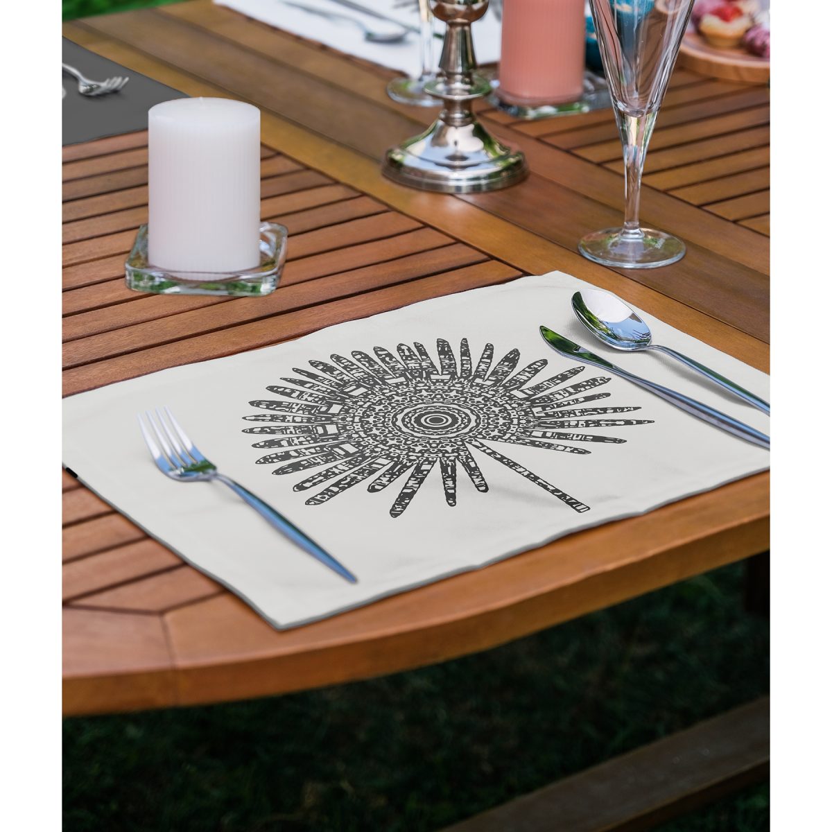 4’lü Karakalem Etnik Fil Motifli Tropik Yaprak Tasarımlı Sunumluk – Sunum Altlığı – Amerikan Servis Seti