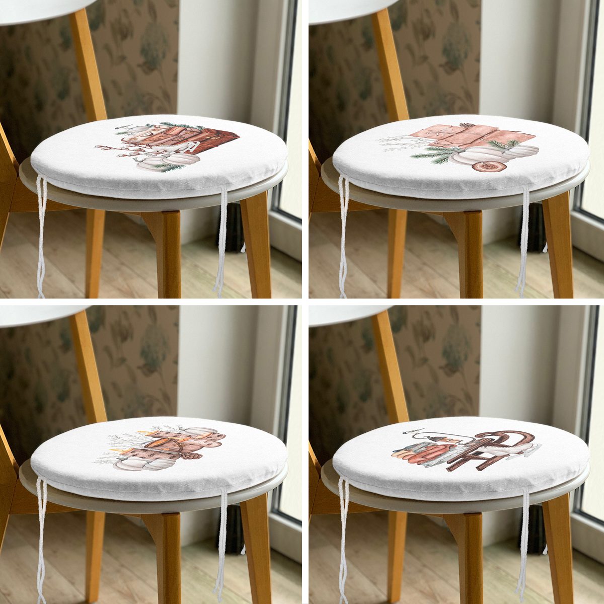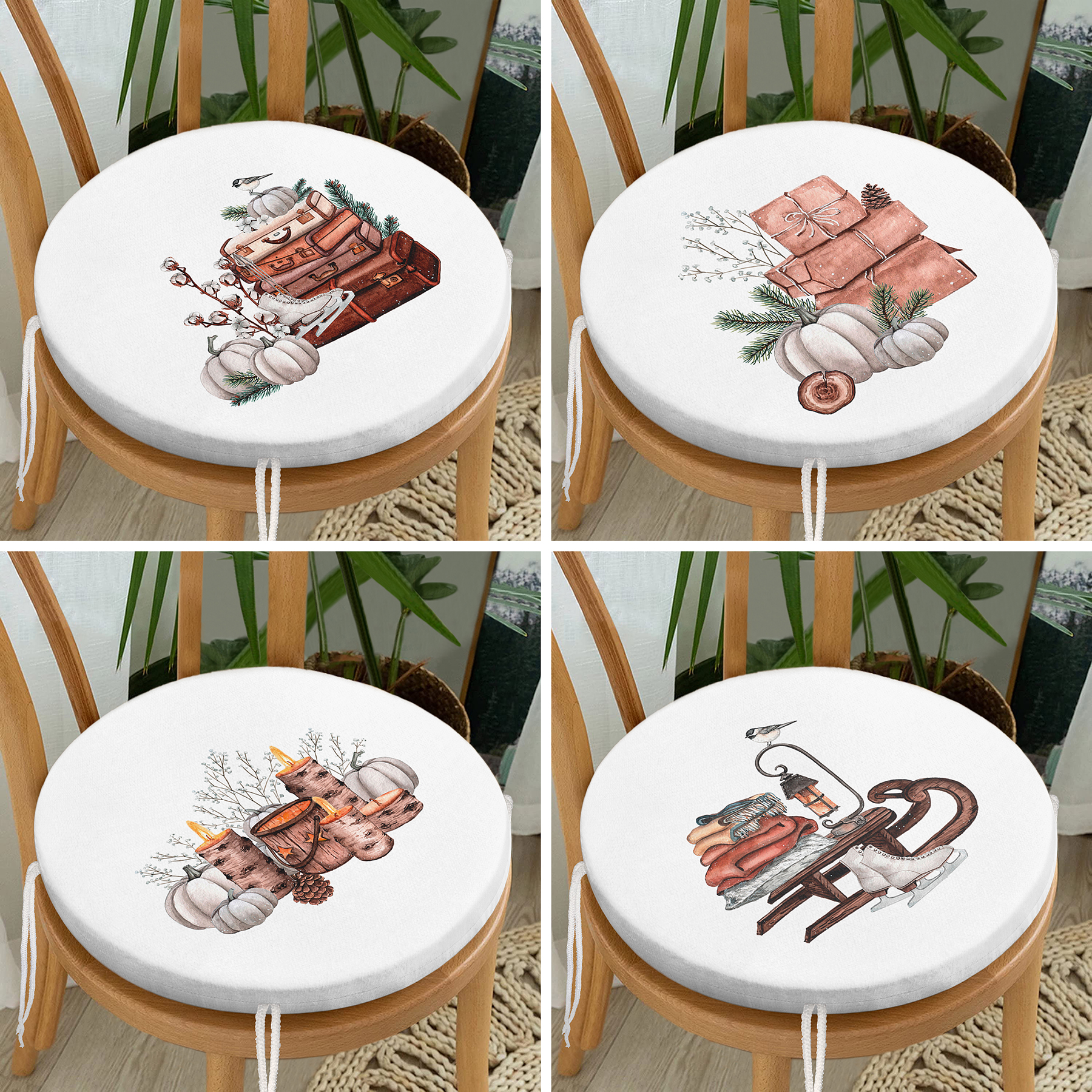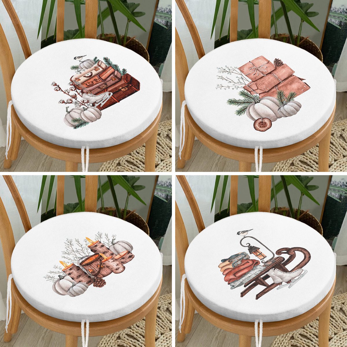 4'lü Kış Temalı Özel Tasarım Dijital Baskılı Modern Yuvarlak Fermuarlı Sandalye Minderi Seti Realhomes