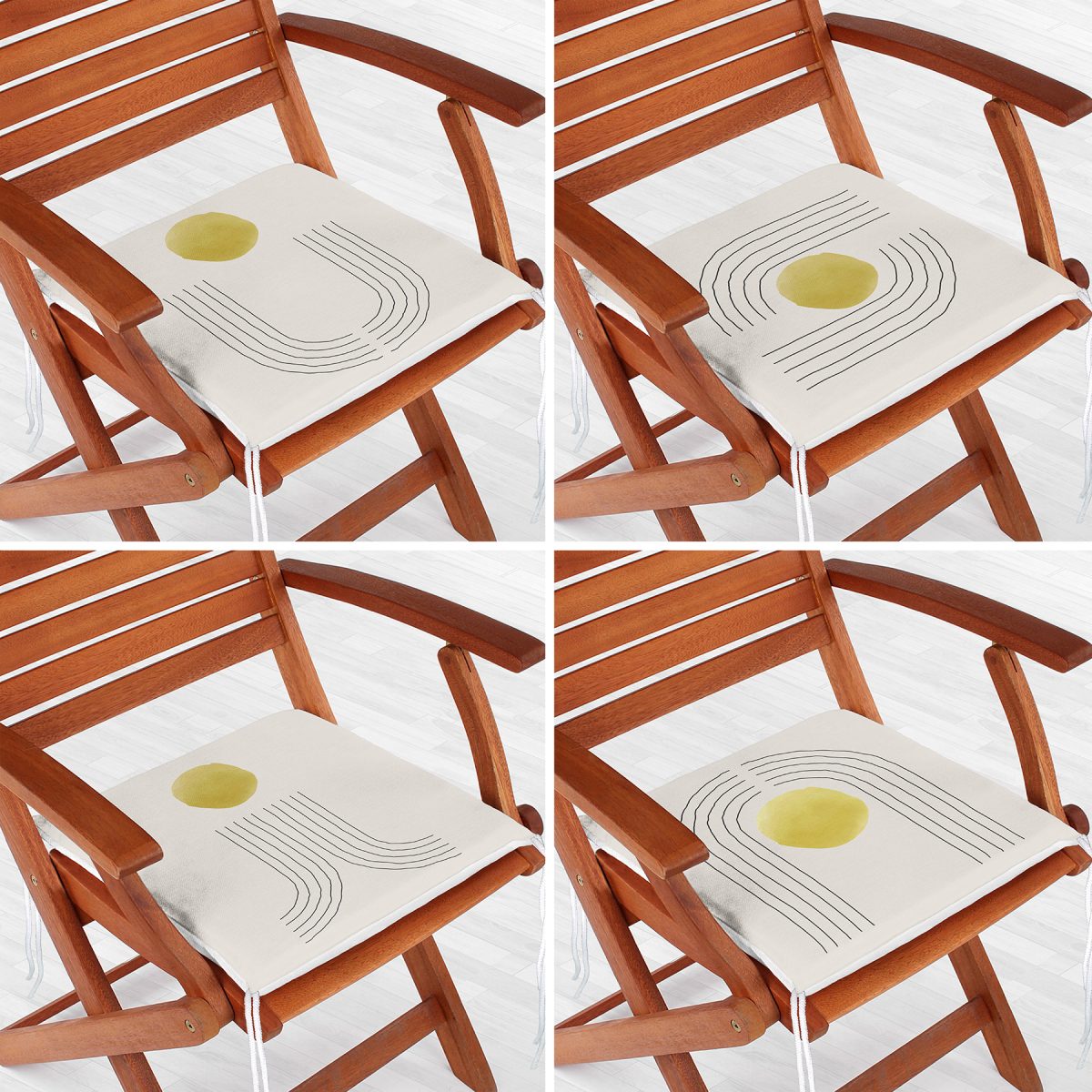 4’lü Krem Zeminli Çizgili Motifler Fermuarlı Sandalye Minderi Seti