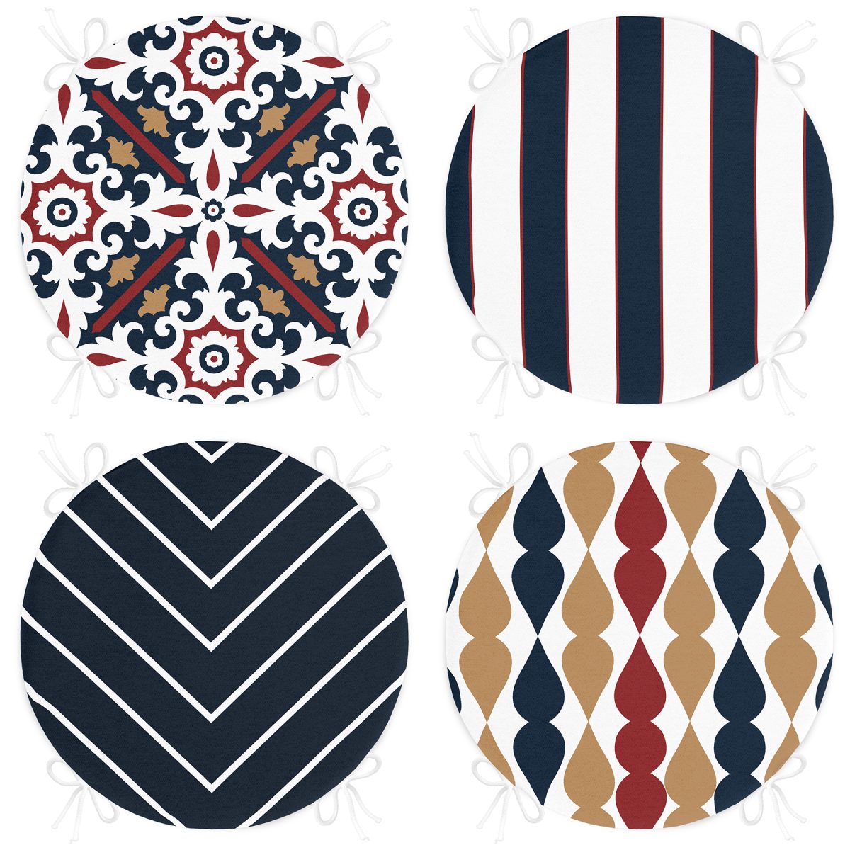 4’lü Lacivert Özel Tasarım Çizimli Yuvarlak Fermuarlı Sandalye Minderi Seti