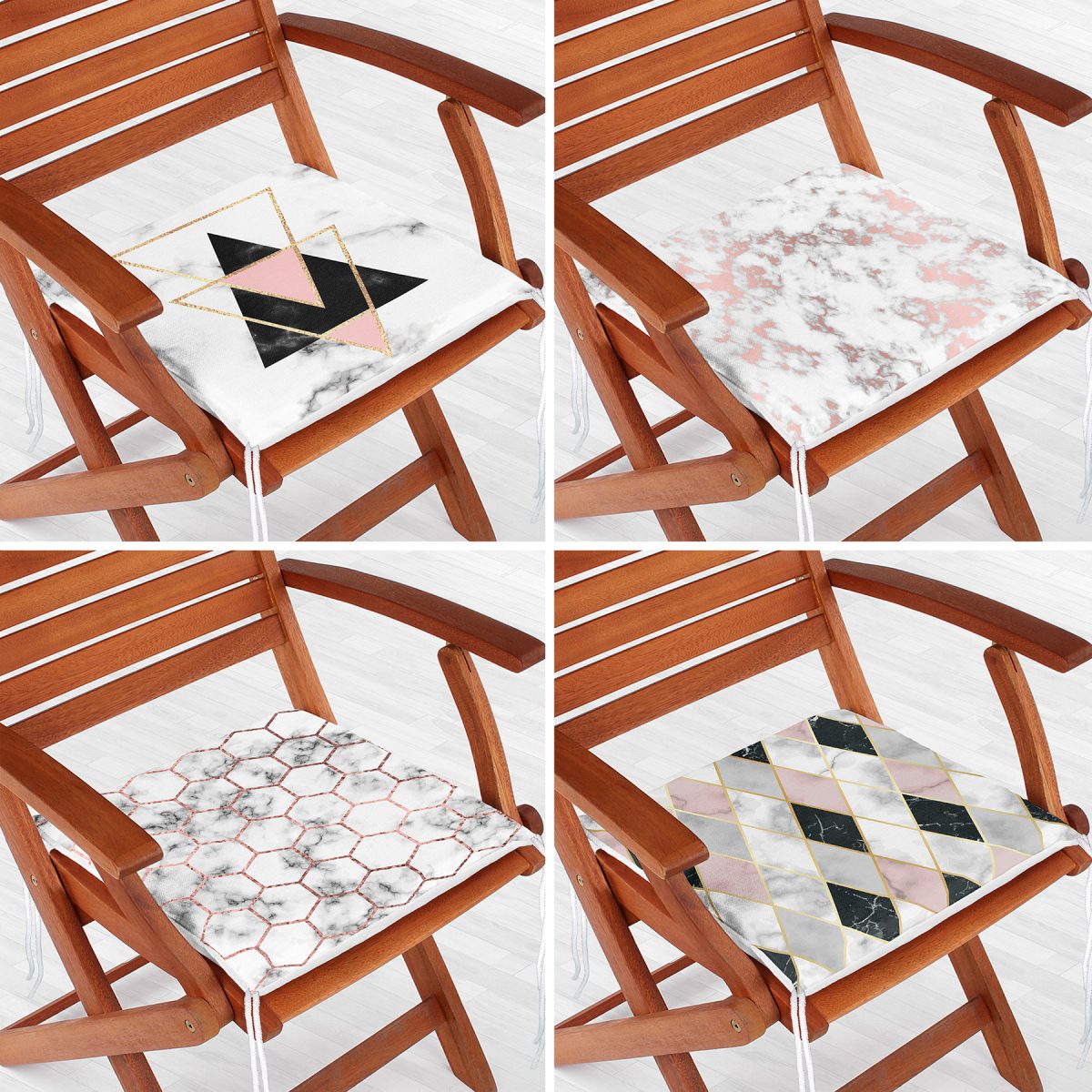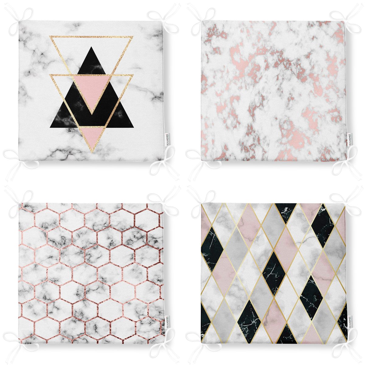 4'lü Mermer Zeminli Geometrik Desen Motifli Fermuarlı Sandalye Minderi Seti Realhomes