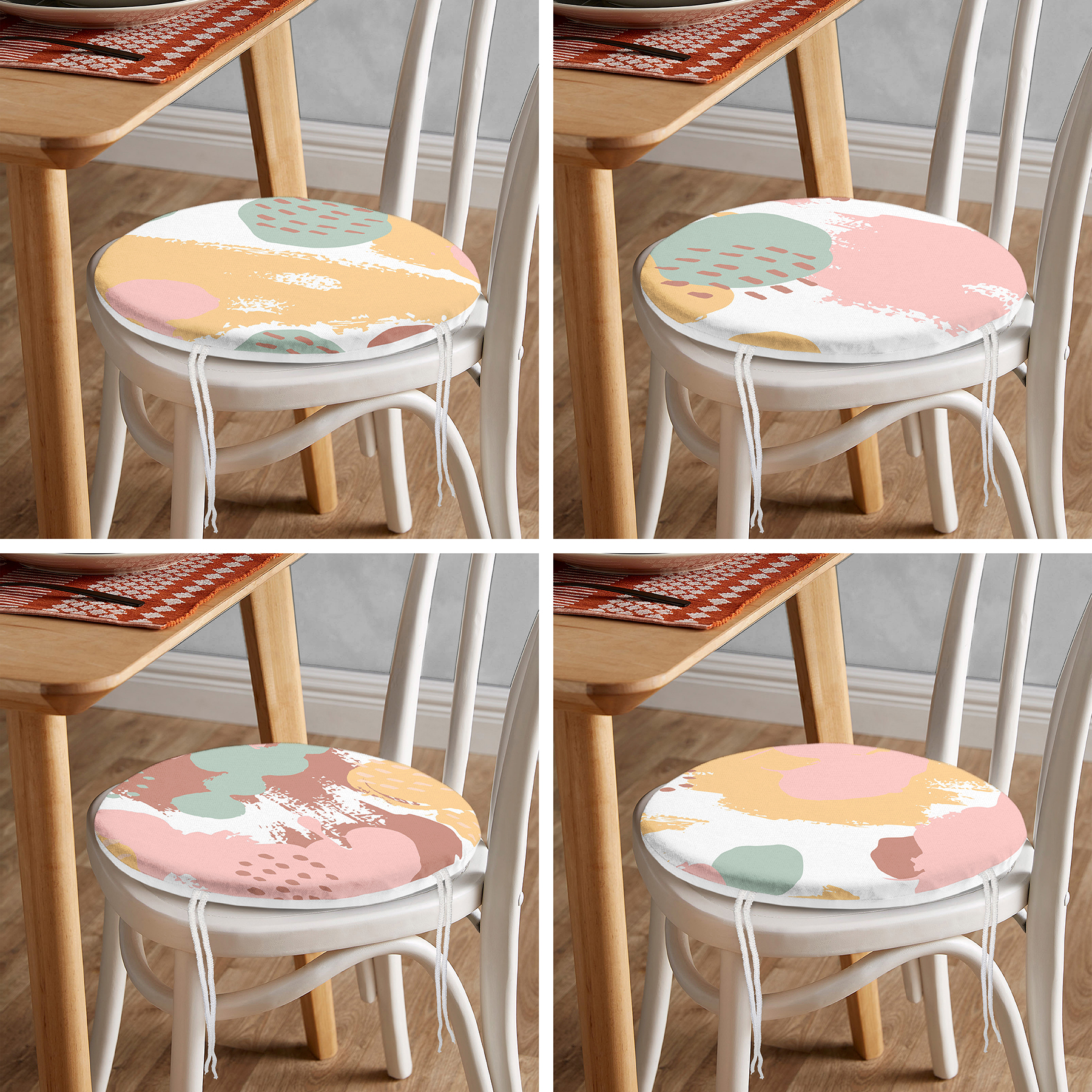 4'lü Modern Yağlı Boya Baskılı Yuvarlak Fermuarlı Sandalye Minderi Seti Realhomes
