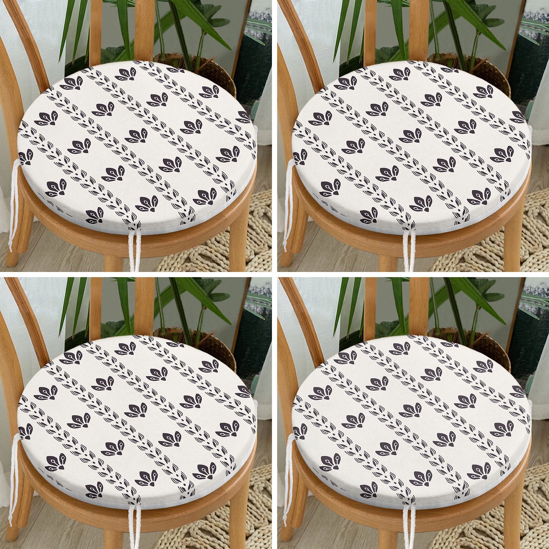 4’lü Özel Tasarım İskandinav Motifli Dijital Baskılı Modern Yuvarlak Fermuarlı Sandalye Minderi Seti